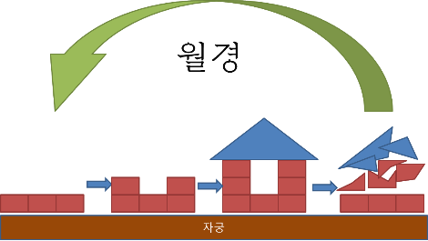 아기가 살수 있는 빨간 벽돌의 집을 만든 후, 아기가 안 만들어지면 살 수 있는 빨간 벽돌집을 허물어 버리는 과정. 두꺼워진 자궁내막은 아기가 살수 있는 집, 월경혈은 빨간 벽돌에 비유하였습니다.