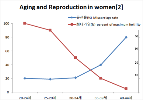 유산율은 30대 이전에는 7-15%, 30-34세에는 8-21%로 약간 증가되는 경향이 확인됩니다. 하지만 35-39세에는 17-28%, 40대가 넘어가면 34-52%로 급격히 그 위험이 증가하게 됩니다.