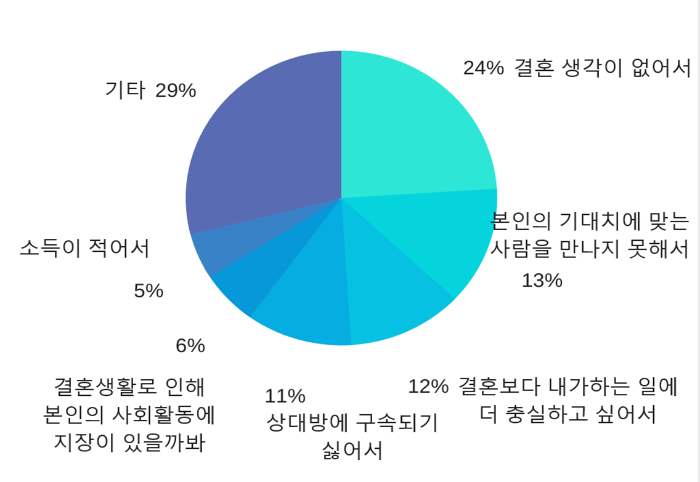 2. 통계청, 결혼의향이 없는 미혼남녀(20~44세)의 아직까지 결혼하지 않은 이유 2015