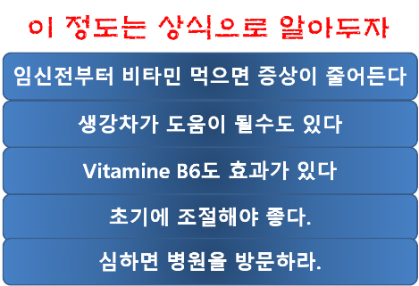 - 구역, 구토가 시작되는 초기에 조절해야 더 이상 심해지지 않는다.