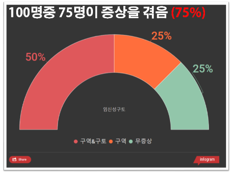 임신 중 메스꺼움을 느끼는 경우는 산모의 50-80%, 구토를 하는 경우에는 50%에 달합니다. 임신 6주 정도부터 증상이 나타나며 임신 8-12주 때 가장 증상이 심해졌다가, 과반수의 산모에서 임신 14-16주 이내에 사라지게 됩니다. 임신 중 구토와 메스꺼운 증상은 흔하면서도 산모와 아기 모두의 건강에 영향을 미칠 수 있기 때문에 관리가 매우 중요합니다.