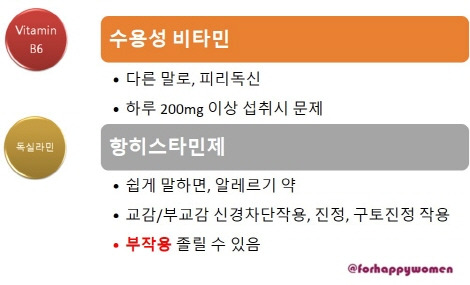 비타민 B6는 피리독신(Pyridoxine)이라고도 수용성 비타민입니다. 많은 양을 먹으면 피리독신 산으로 전환되어 소변으로 배설됩니다. 하루 2000mg/일 이상의 고용량 피리독신을 섭취하면 신경손상이 유발될 수 있다고 하고, 200mg/일 이상의 피리독신을 장기간 섭취하면 손발이 쑤시고 졸리게 되며, 혈청 엽산 농도가 저하된다고 하니 과용량으로 복용 시에 산모에게는 안 좋을 수 있습니다.