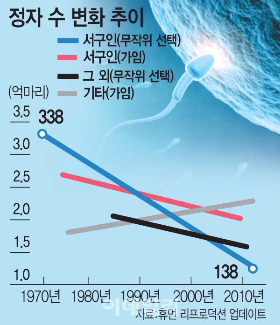 (관련기사 link; 남자 정자수 40년만에 60% 급감...인류 생존 위협?(종합) 이데일리, 차예지 기자)
