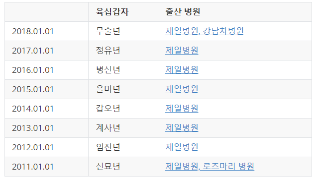 우리에겐 미래를 예견하는 능력은 없지만 과거의 기록은 살펴볼 수 있습니다. 최근 2011-2018년 동안의 새해 첫 출산 아기들은 제일병원에서 태어난 경우가 많았습니다.