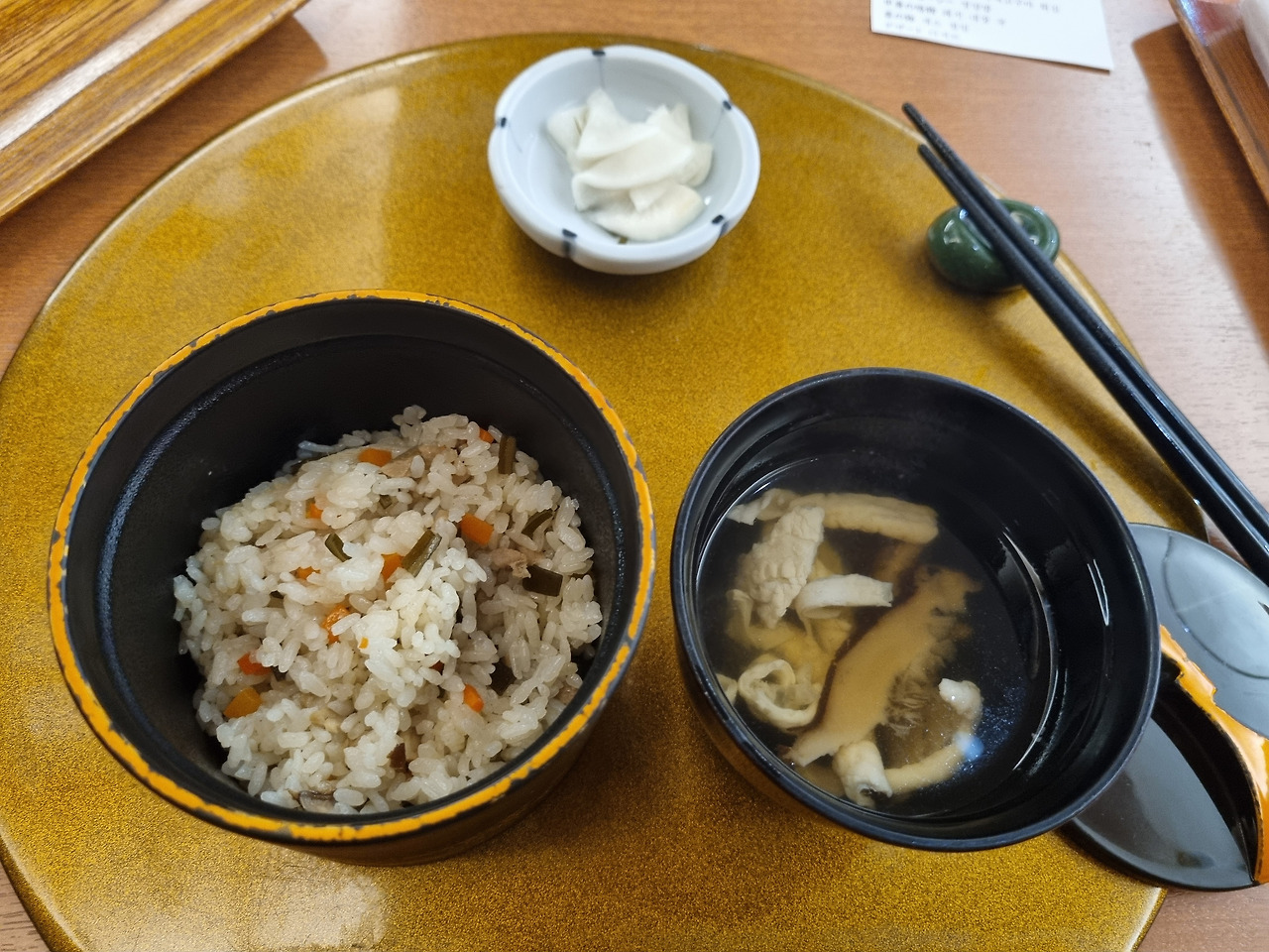 오키나와 전통 음식은 두 가지 메뉴를 주문했는데, 하나는 돼지 요리고, 하나는 해물 요리다. 사위가 해물 요리를 원했다고 한다. 먹고 나서 생각하니 해물 요리가 더 좋아 보였다. 돼지 요리는 예를 들어 돼지 내장으로 만든 탕은, 눈으로도 맛으로도 문제는 없었지만, 재료가 주는 낯섦 때문에 먹으면서도 기분이 이상했기 때문이다. 돼지고기는 잘 먹으면서 돼지 내장탕은 부담스러워하는 심리가 참 얄궂다. 다시마를 채 썰어서 돼지고기와 섞은 음식은 상당히 따듯했는데 의외로 색다르고 맛있었다.