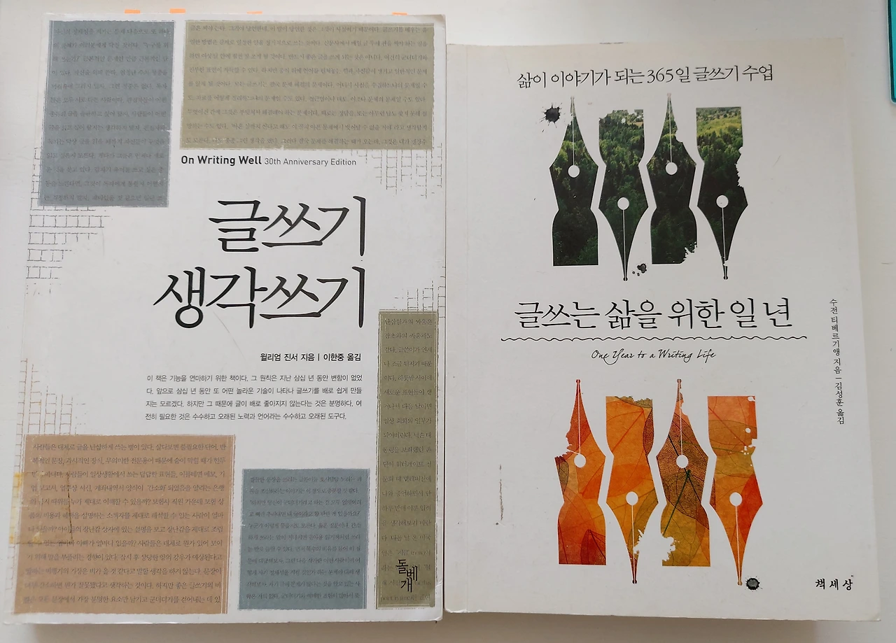 대학에서 ‘사고와표현’ 과목 강의를 하면서 많은 글쓰기 교재를 살펴보았는데, 두 책이 가장 좋았다. 하나는 예일대학에서 강의한 교수이자 작가인 윌리엄 진서가 쓴 <글쓰기 생각쓰기>이고, 다른 하나는 스위스에서 활동하는 미국 작가 수전 티베르기앵이 쓴 <글 쓰는 삶을 위한 일 년>이라는 책이다. <글쓰기 생각쓰기>는 이론서에 가깝고, <글 쓰는 삶을 위한 일 년>은 실전용에 가깝다.