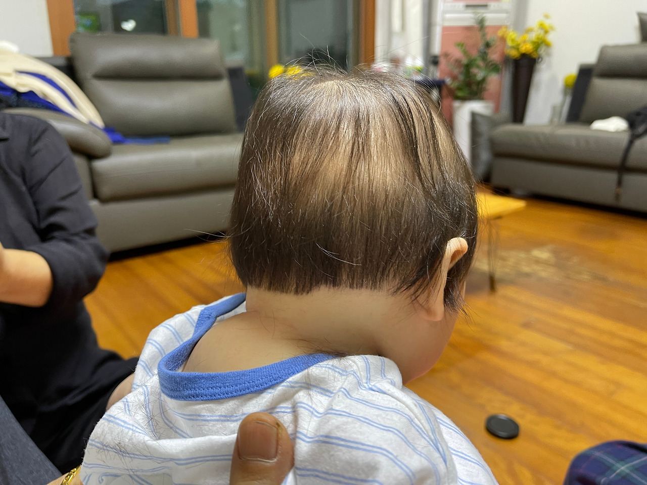 애가 많이 더운가 고민할 즈음 장모님께서 '머리 한 번 이발을 해야 하는 거 아니니?'라고 물어보셨다. 어차피 여자아이라 머리가 길어질 동안 내버려두어야 하는 것 아닌가 생각하고 있었는데 이번엔 엄마도 잘라주는 게 좋겠다고 하셨다.