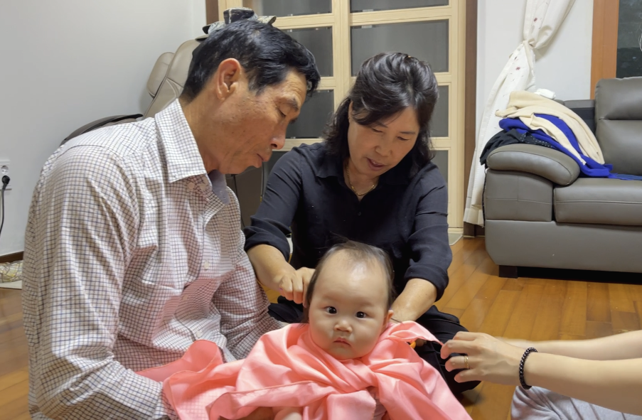 마침 부모님 댁에 놀러 갔을 때다. 왕년에 엄마가 나와 내 동생의 머리를 이발해주시던 솜씨를 믿고 손녀딸의 배냇머리를 맡겼다.