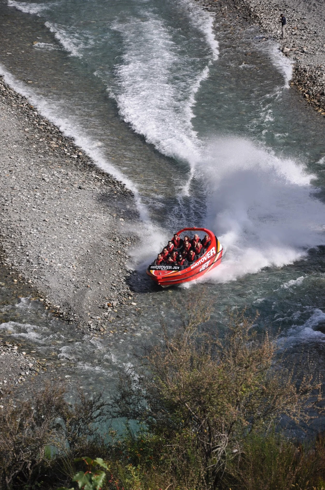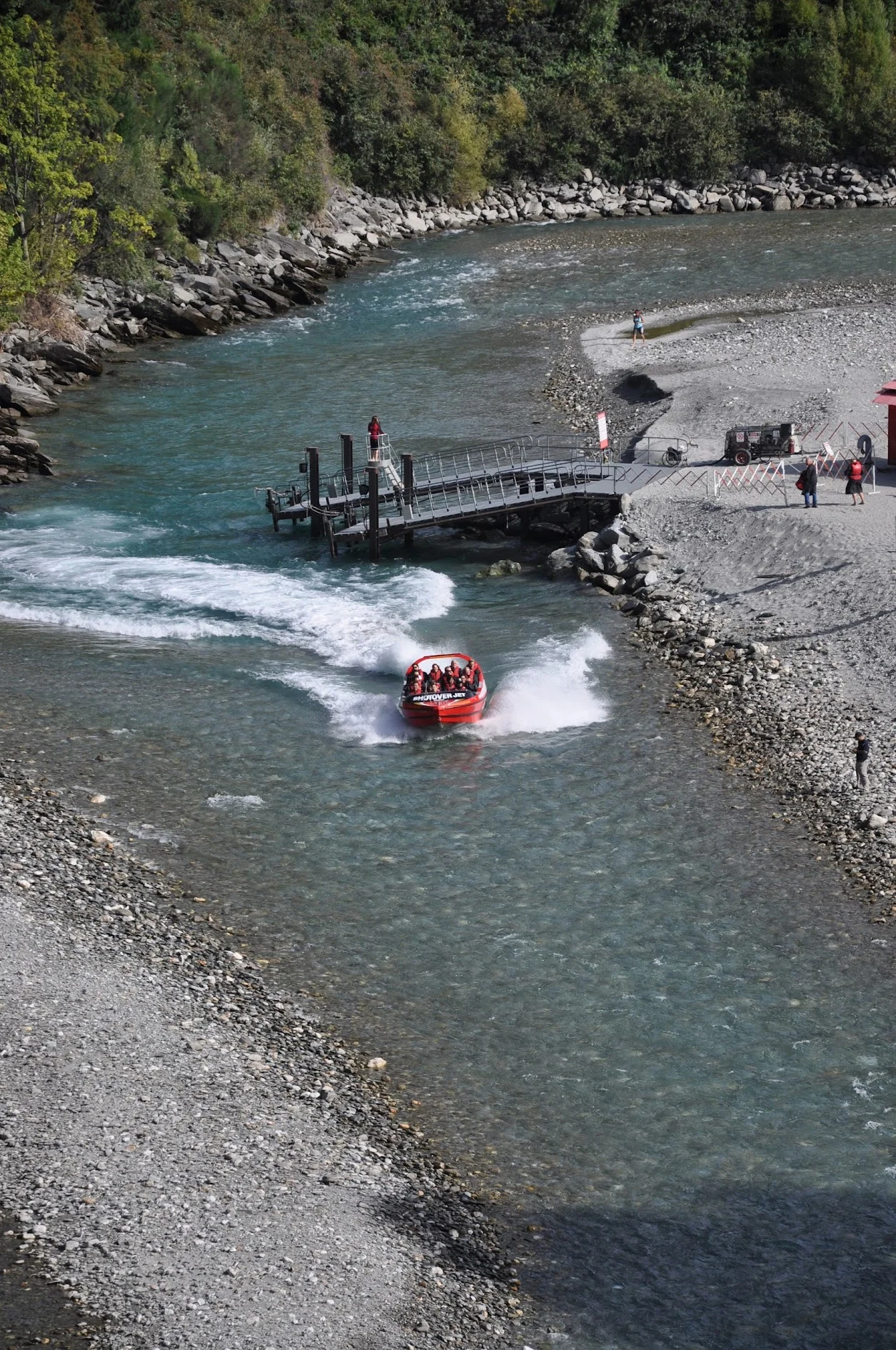 캠핑장 밖으로 나와 곧장 아서 포인트로 향한다. 뭐가 있을지는 모르고 그냥 지도에 표시되어 있길래 가보기로 한다. 퀸스타운에서 대략 4km 정도 떨어진 그리 멀지 않은 곳이다. 출발 후 곧장 오르막길을 만났으나 가뿐히 올라갔다. 날이 덥다. 땀이 난다. 겉옷을 벗으면 춥고 입으면 덥다. 조금 달리다 다리를 만났다. 그 옆으로 '부앙~~' 하는 소리가 났는데 제트 보트 소리다. 알고 보니 쇼토버 제트보트 회사의 레포츠 장소인 것 같다. 수심이 얕아 보이는 계곡물 사이로 제트보트가 빠르게 이동했다. 폭이 좁은 계곡을 가르는데 스릴이 상당해 보인다. 잠시 구경을 하다가 자릴 옮겼다.