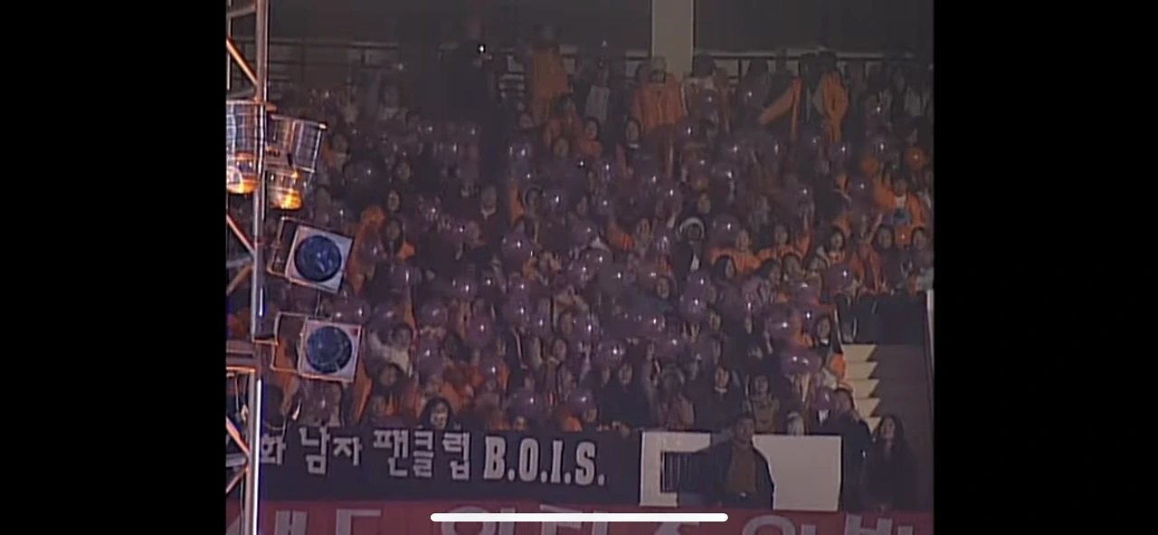 이번엔 중앙 아랫쪽에 있던 <Club K.I.T.>에서 들려왔고 그것은 역시나 하얀색 풍선들, 주황색 응원봉, 그리고 우리 보라색 풍선을 들고 있는 S.E.S. 팬클럽으로 전달되어 장충체육관을 덮었다.