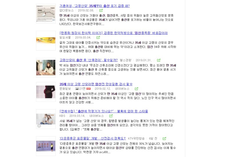 뉴스 화면 캡처에 보면 만 35세 이상을 고령산모라고 한다