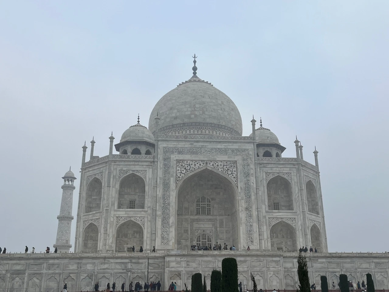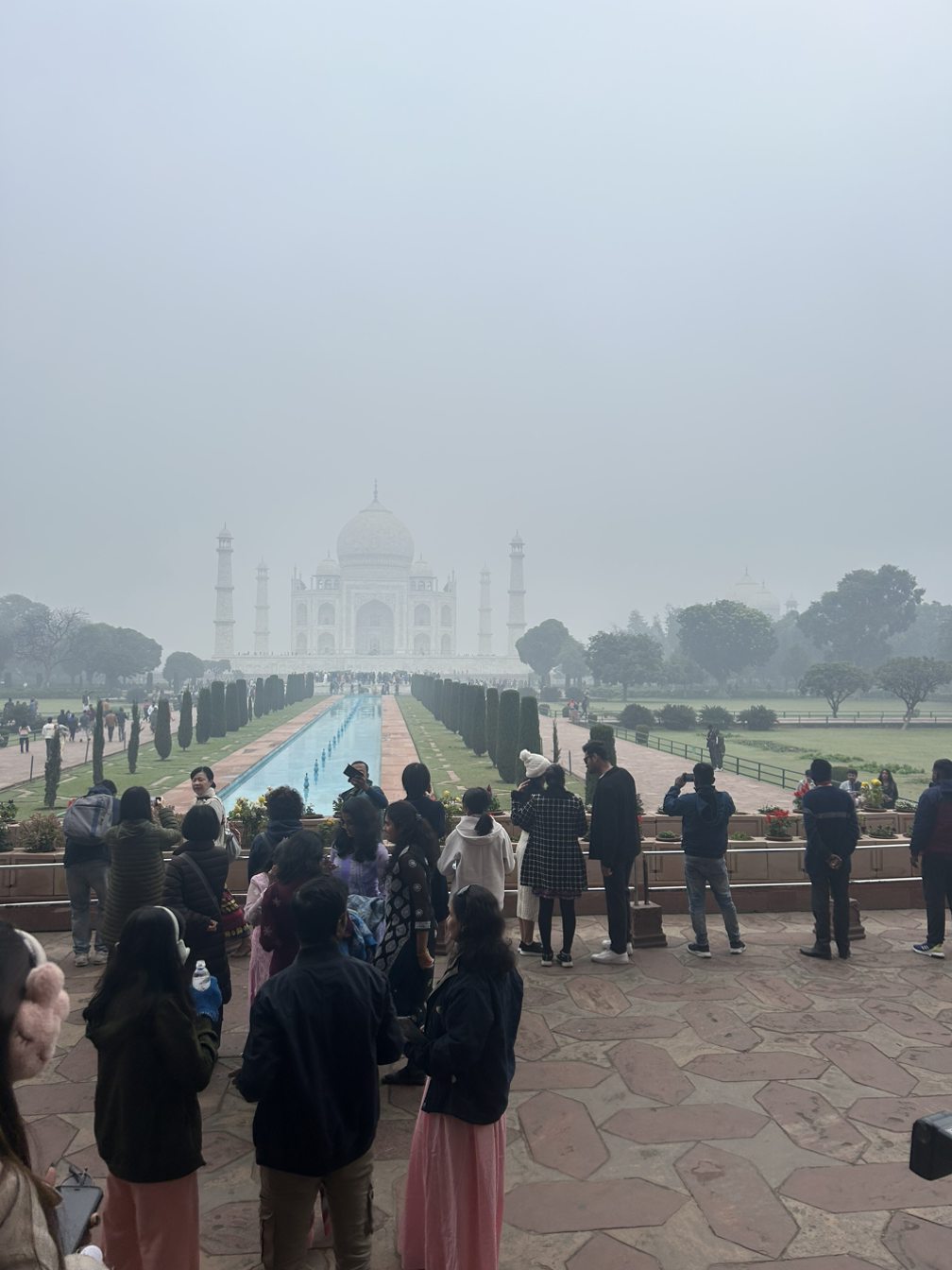 작은 문에서 정확하게 보이는 타지마할의 정면은 생각보다 더 거대했고 웅장했다. 세계의 몇 안 되는 불가사의로 꼽힐 만큼 화려했고 그런 타지마할을 내 눈으로 직접 보고 있다는 사실은 온몸의 전율이 올 만큼 짜릿했다. 여기저기 넋을 잃고 타지마할을 바라보는 사람들로 가득하였고, 인생샷을 찍기 위해 온 사람들로 북적였다.
