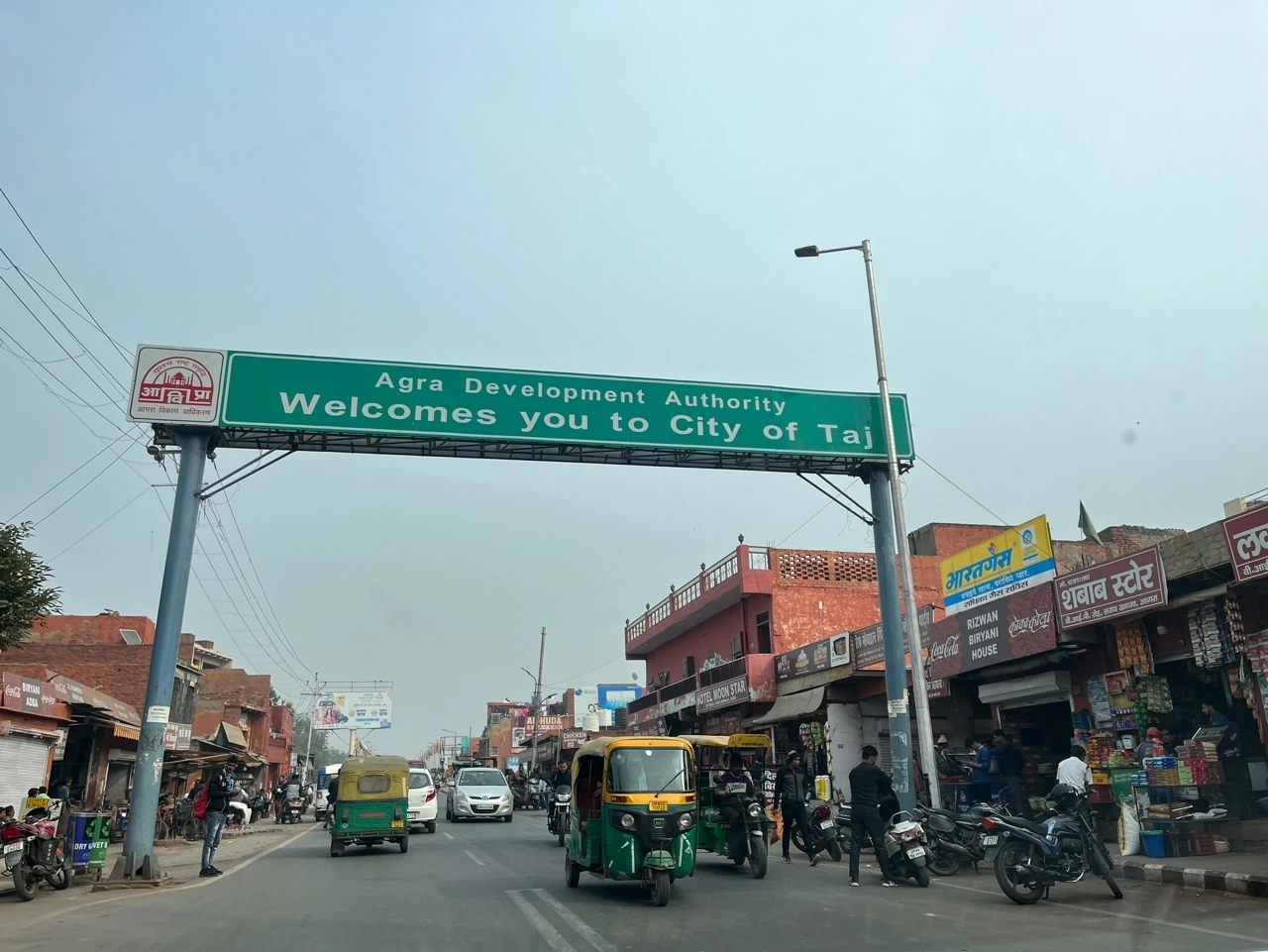 여러 우여곡절을 거친 우리는 아침 일찍 타지마할을 보기 위해 길을 나섰다. 숙소에서 20분가량 차량을 타고 간 뒤 차량이 들어갈 수 없는 곳에서부터 툭툭이를 타고 이동했는데 눈앞에 펼쳐진 모습 속에서 인도의 빈부격차가 그대로 느껴졌다. 소달구지를 타고 가는 청년들과 쓰레기더미들, 여기저기 널브러져 있는 개들, 염소 그리고 원숭이, 구걸하는 아이들을 지나 타지마할 입구에 도착했다.