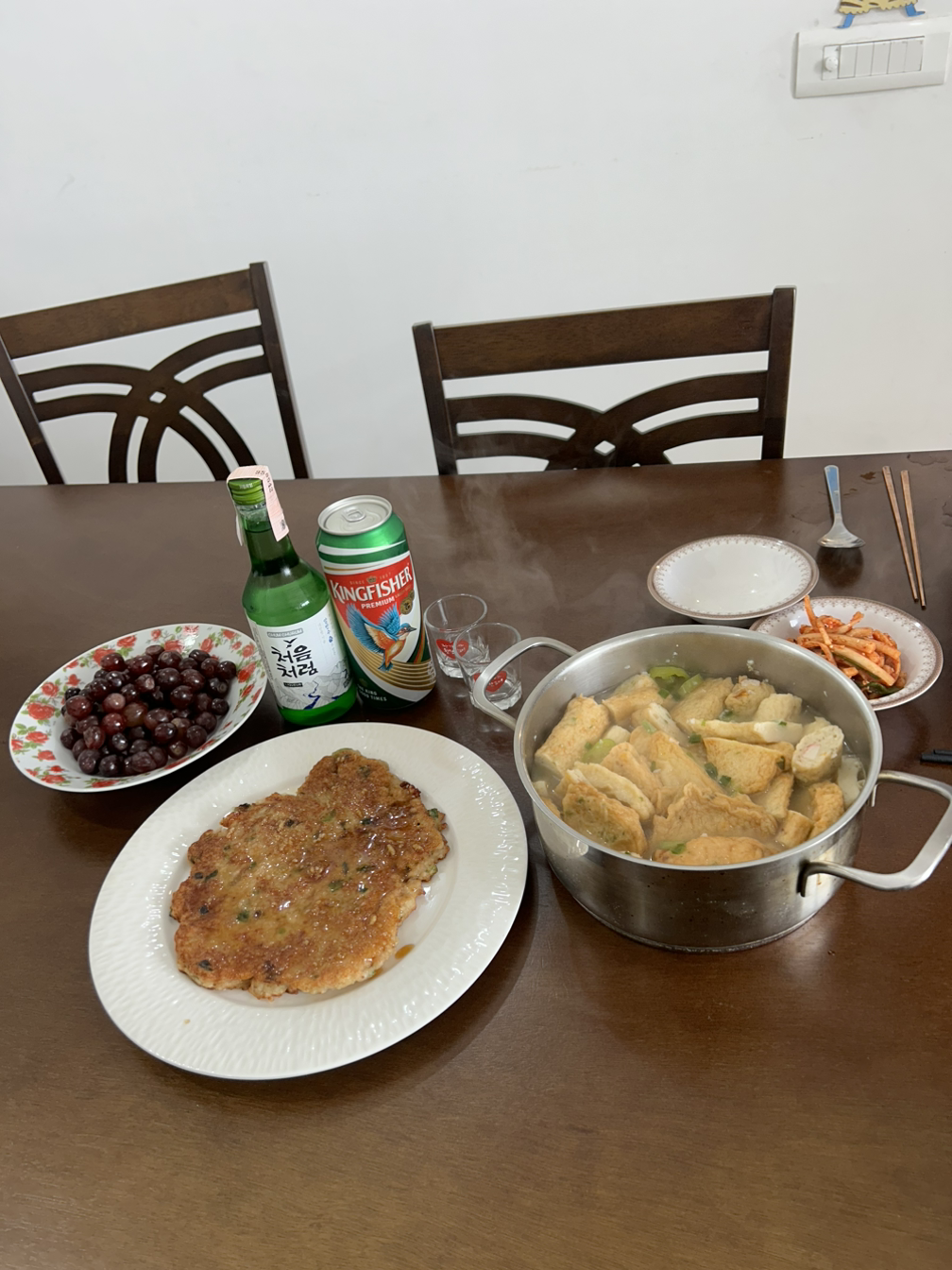 화상통화로 저녁식사 하실 때 참여했는데 마치 옆에서 함께 엄마의 생신을 축하해 드리는 것 같아 마음이 그나마 조금 덜 죄송했다. 우리도 한국시간 7시쯤에 맞추어 오랜만에 근처 리쿼샵에서 한국소주도 사 오고 어묵탕과 전도 만들어 엄마의 생신을 축하해 드렸다. 아이들과 생신 축하 노래도 불러드리며 촛불도 함께 끈 뒤 며칠 전 준비했던 편지를 서프라이즈로 읽어드렸다