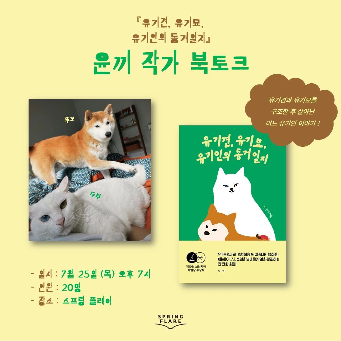 여기까지도 읽어주셔서 감사합니다. 다음 주 쯤에 연남동에 위치한 좋은 책방에서 북토크를 하게되었습니다. 시간되시면 함께 시간을 나누고 싶어 조심스레 초대 글을 올려봅니다. 평소 글쓰기나 ‘반려동물’에 관한 글쓰기에 관심있으셨던 분들은 함께 해주시면 더욱 의미있을 것 같아요 :)