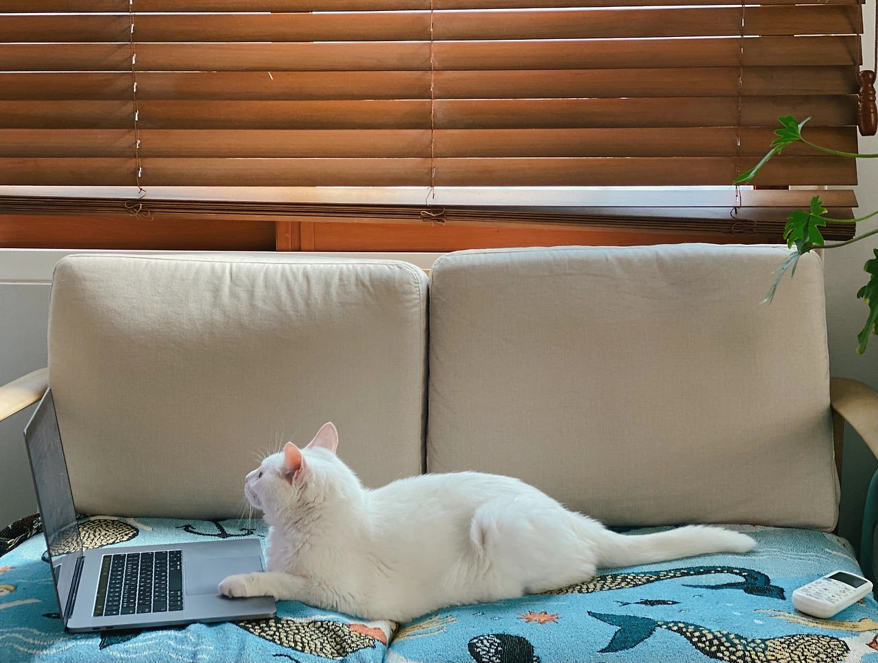 A. 전엔 늦게 퇴근하는 인간 하나랑 살았어서 낮에 정말 조용했어요. 혼자 창밖 보거나 굴러다니거나 뭐 자거나 하는 시간이 대부분이었죠. 이럴 줄 알았으면 그때 많이 자둘 걸 그랬네요. (웃음)
