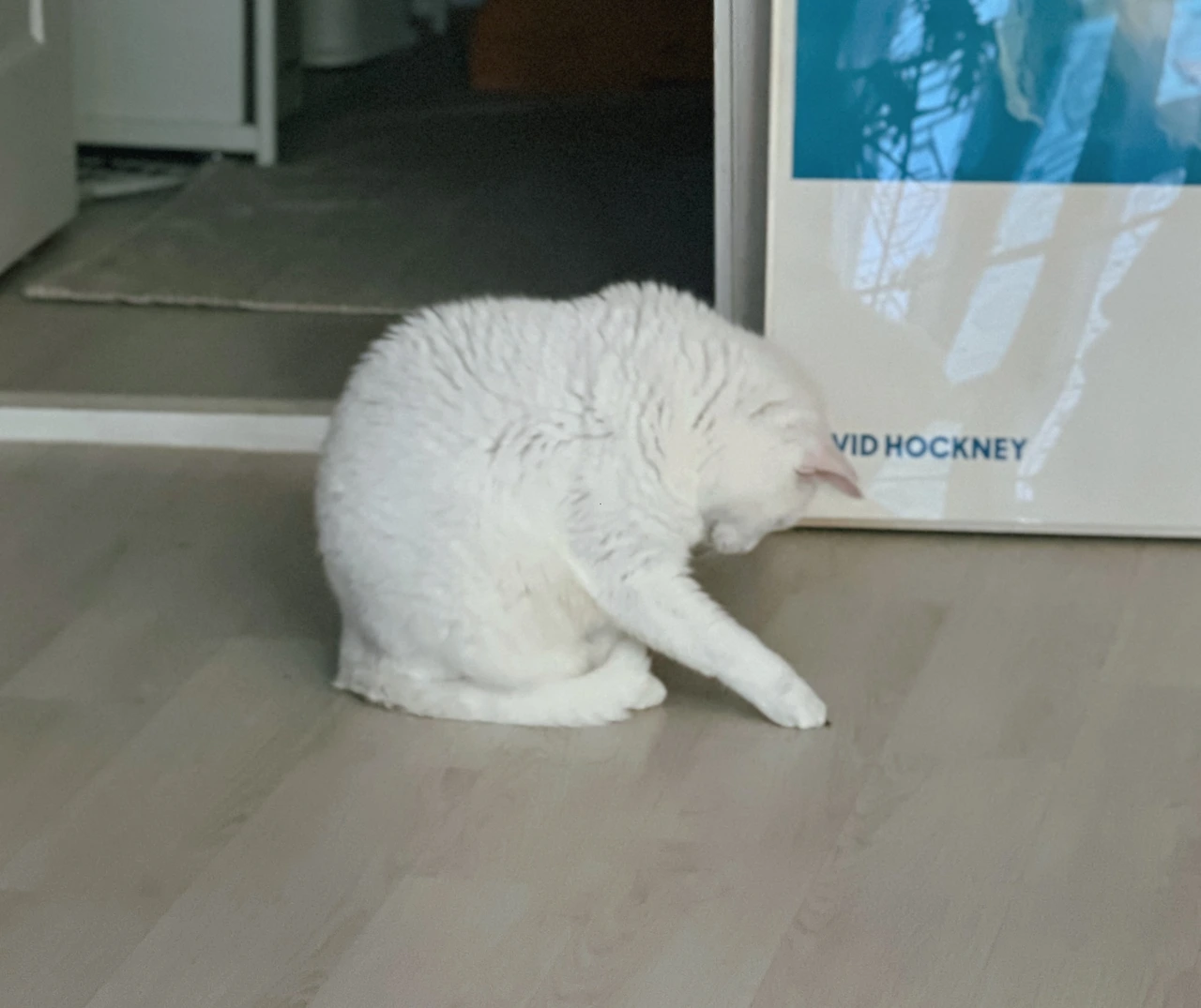 - 모든 고양이가 그런가 싶다가도 두부의 행동 패턴은 전혀 예상할 수가 없다. 어느 때는 유독 붙어있기를 원하지만 또 어느 때는 만지는 것조차 질겁하며 도망가기도 한다. 하루의 대부분을 수면으로 채우는데, 잠을 자다가 또 언젠가는 우다다다다 하며 홀로 뛰어다닌다. 자기 나름대로 '플랜'과 '루틴'이 있을 것 같지만 인간은 전혀 그것이 파악이 되지 않는다. 개는 패턴이 있어서 요구하는 바와 현재의 상태가 쉽게 파악되지만 고양이는 정말 어렵다.