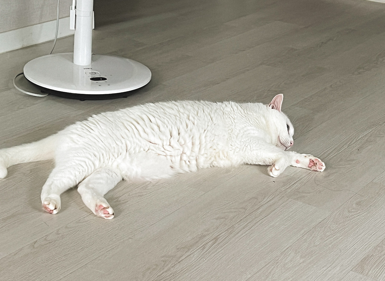 겨울만 되면 온열매트와 볕이 드는 자리를 찾아다니는 두부는 어떨까. 두부와 뜨거운 여름을 함께 보내는 건 처음이다. 왠지 따뜻한 걸 좋아하고 사랑할 것 같은 녀석인데, 가뜩이나 늘어지는 걸 좋아하는 두부는 여름이 되니 더욱 더 몸을 늘어뜨리고 있다. 여름은 두부의 게으름에서 발산되는 매력을 한껏 고조시켜주었다. 그리고 푸코보다 훨씬 예민하고 영민하다는 걸 여름을 통해 재차 확인한다.