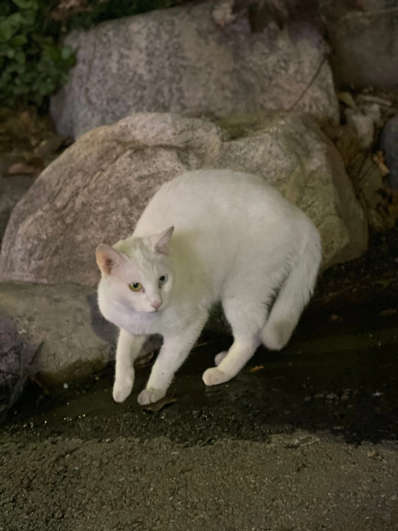 푸코와 여느 때처럼 산책을 하던 중 흰 고양이를 만났다. 유기가 아닌 차라리 유실이길 바라는 두부와 닮은 흰 고양이다. 보통 우리가 생각하는 ‘길고양이’ 이미지와는 사뭇 다른 하얗고 마른 길고양이. 먼지를 잔뜩 뒤집어쓴 꾀죄죄한 고양이의 회색 털 사이로 한 때는 집고양이였던 흔적들이 남아있다. 우리 두부의 첫인상도 저랬을까.