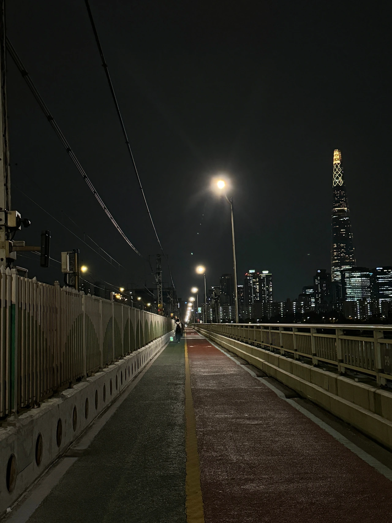 다리를 걸으며 도시의 심장 소리를 느꼈다.