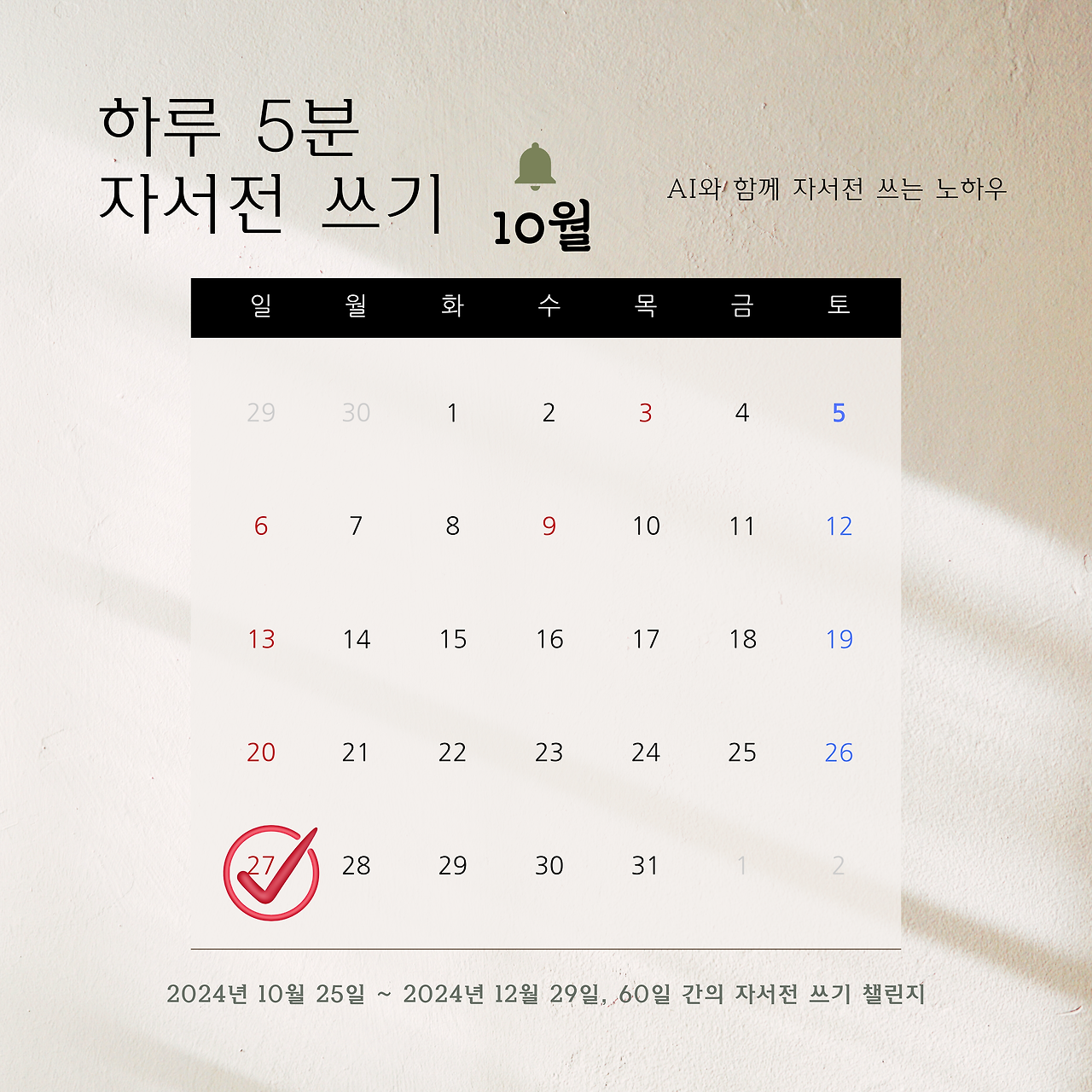 2024년 10월 25일 ~ 2024년 12월 29일, 60일 간의 자서전 쓰기 챌린지