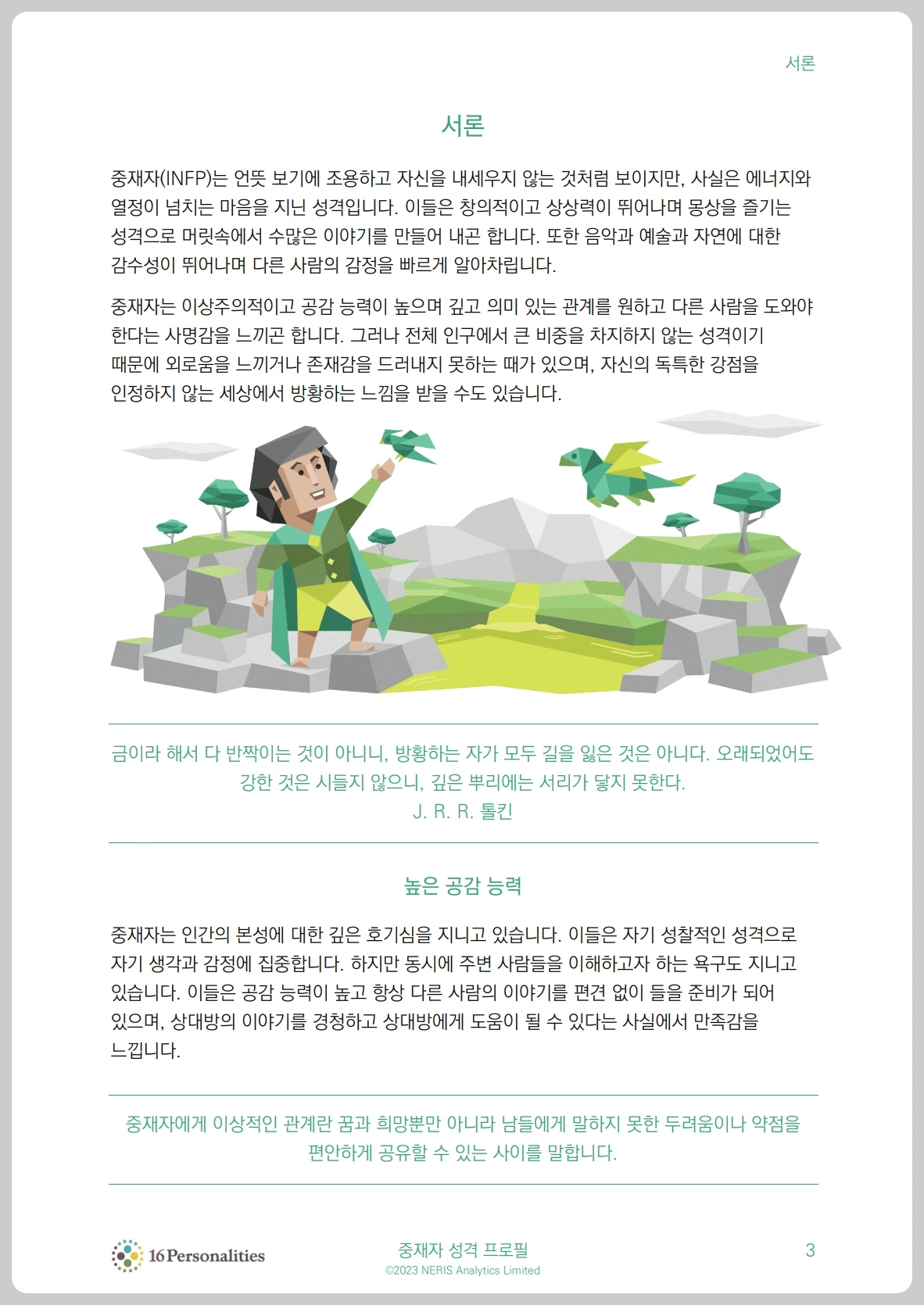 정말 흥미로운 여정이네요. '싸움'이라는 틀에서 시작했지만, INFP의 성향이 결국 더 나은 해결 방법을 찾게 했다는 말씀이 인상적입니다. 아홉 번째 질문입니다. 그렇다면 이 경험을 통해 '회피형 INFP'로서의 자기 인식도 변화가 있었을 것 같은데요. 이제는 자신을 어떻게 바라보시나요? 갈등을 대하는 방식에 대한 새로운 깨달음이 있으셨다면 어떤 것인가요?
