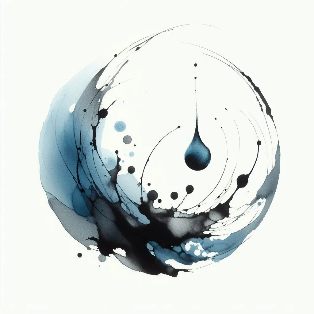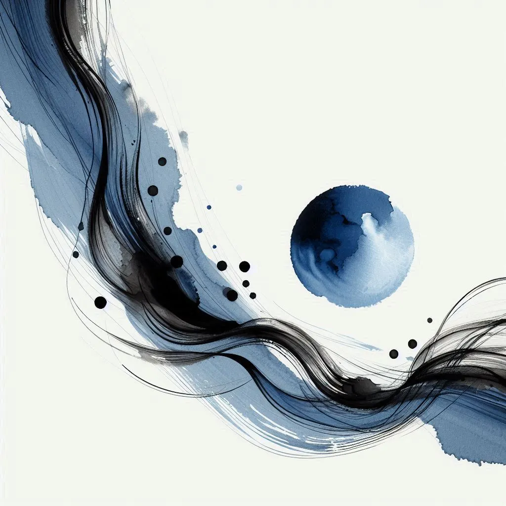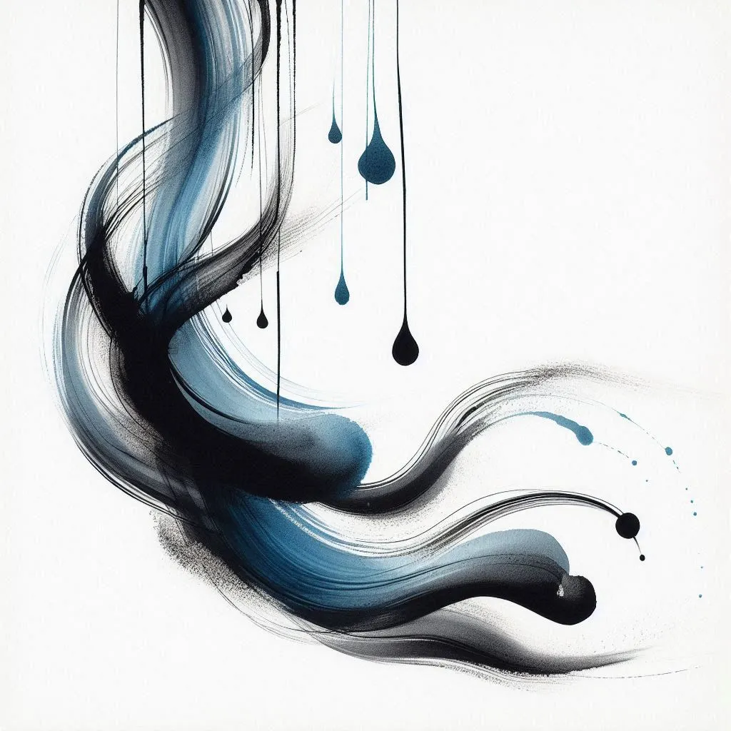 * 이미지 생성 프롬프트는 '푸른 눈물방울이 검은 잉크로 변하는 추상 미니멀리즘 그림, 선(禪)적인 붓놀림, 흰색 배경, 흐르는 움직임, 감정 표현, 높은 대비, 전문적인 박물관 수준