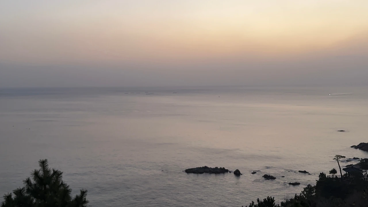 수평 산에 구름이껴 이글이글 타오르는 태양을 보지는 못했지만, 구름에 가려진 책, 연한 붉은빛을 보여 주는 하지만 확실하게 동그랗고 지나치게 눈부시지 않은 예쁜 주황색 해돋이… 나쁘지 않다. 오히려 지금 내 마음을 잘 대변해주는 거 같다. 마음 속에 살아 있는 그 무언가가 구름처럼 마음을 복잡하게 만들고 있는 요즘… 오늘의 해처럼 그래도 내 마음 속에 그 무언가가 여전히 존재하고 매일 떠오르고 있다는 것을 알았다.