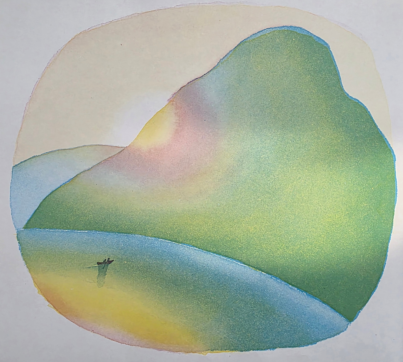 이제 막 눈을 뜨기 시작한 세상의 얼굴을 아이에게 보여줍니다. 유리 슐레비츠의 그림책 **《새벽》** 속 장면처럼, 어스름한 빛이 산과 호수를 깨우는 시간입니다.