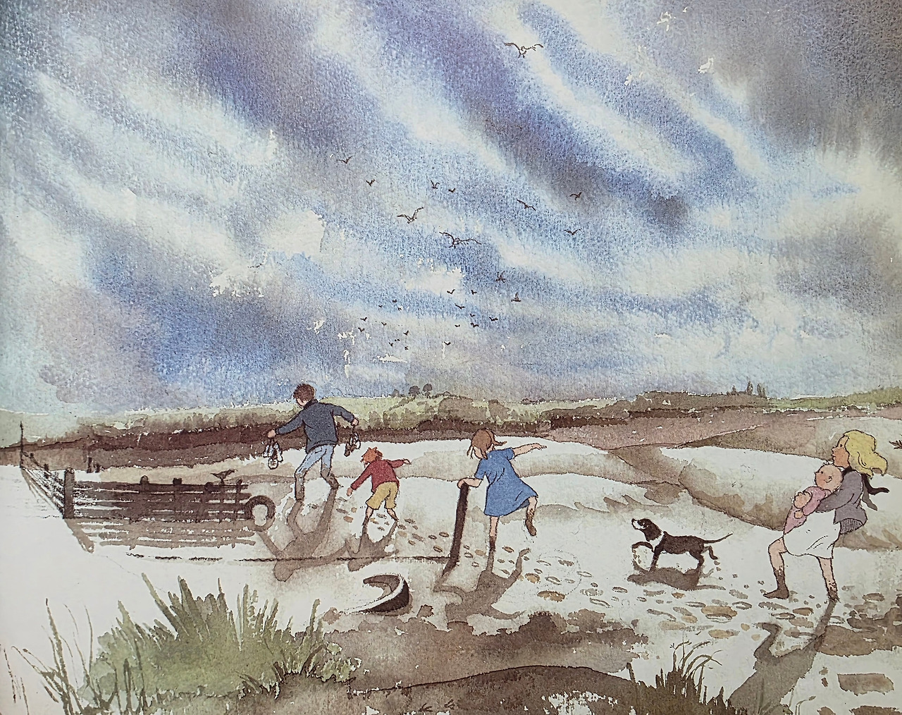 깜짝 놀란 가족은 왔던 길을 전력질주해 돌아옵니다. 동굴을 빠져나와 눈보라를 헤치고, 숲을 뚫고, 진흙탕을 밟고, 강물을 헤엄치고, 풀밭을 가로질러 마침내 집 안 이불 밑으로 쏙 숨어버립니다. 아마 다시는 곰을 잡으러 가지 않겠지요.