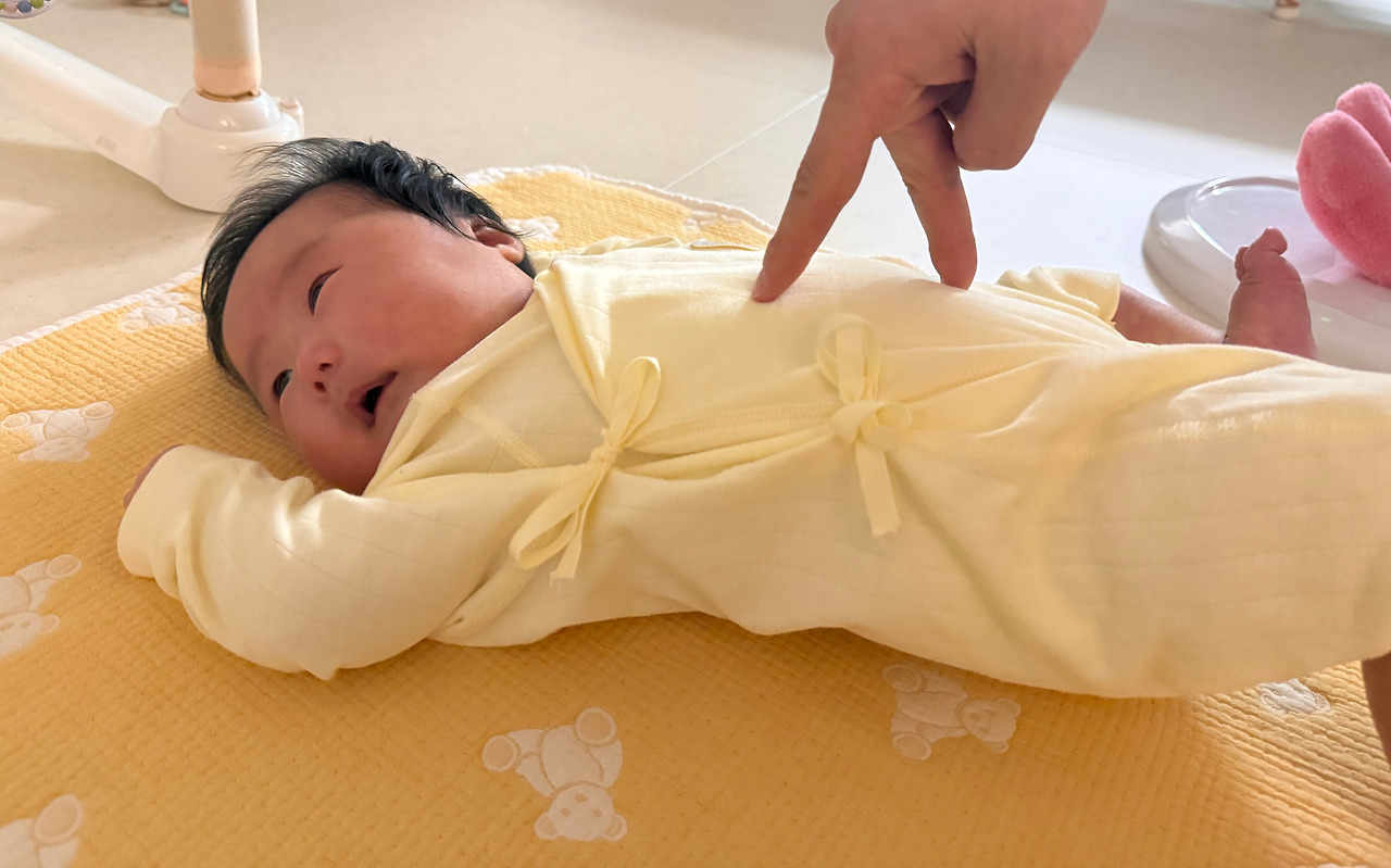 이제 막 옹알이를 시작한 아이의 배 위로 손가락 걸음마를 걸으며 낮은 목소리로 말을 건네봅니다.