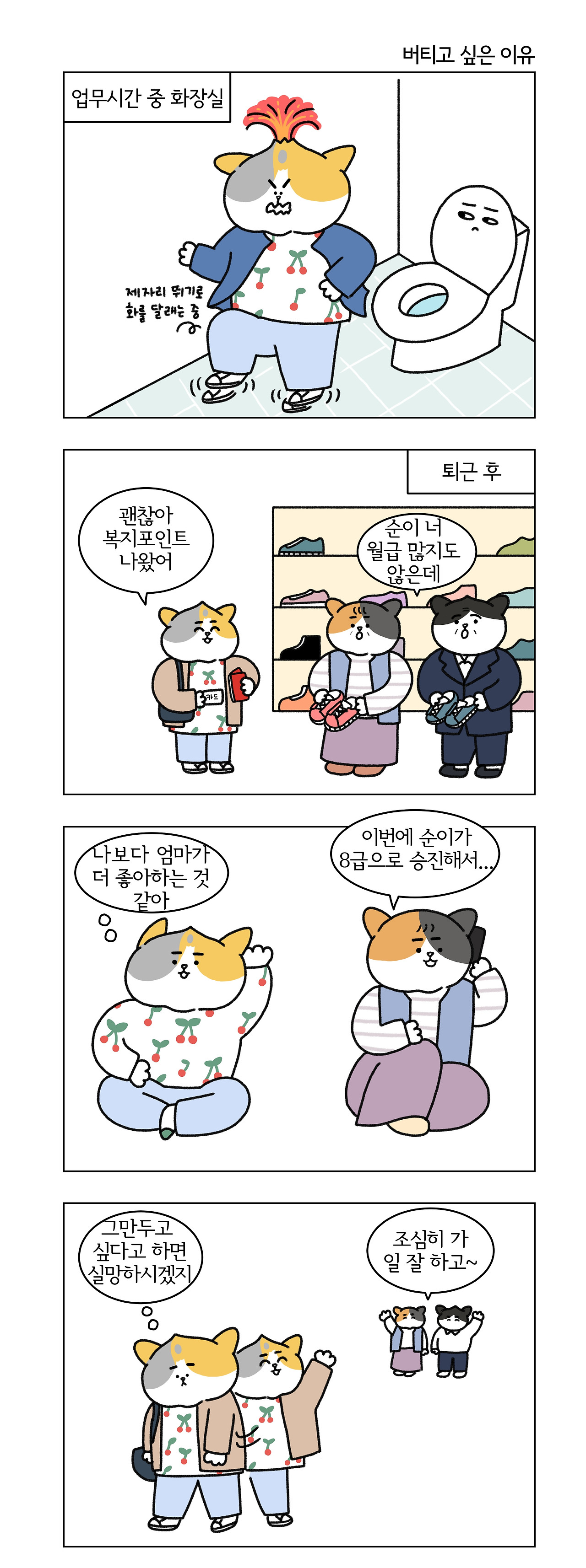공무원이 소시민의 워너비 직업이 된 지 오래다. 집에 돈이 많거나 공부를 뛰어나게 잘하거나 특출 난 재능을 지닌 사람이 얼마나 될까? 그렇지 않은 평범한 사람들에게 9급 공무원 공채는 나라가 제공하는 제대로 된 직장에 취업할 수 있는 기회다. 게다가 지금까지 나란 사람의 배경이나 삶과 상관없이 열심히 노력하면 공정한 결과를 기대할 수 있다. 취업이 쉽지 않은 대학생에게도 이미 취업을 했지만 좌절만 안겨주는 직장생활에 진력이 난 사람에게도 희망이 된다. 나는 비정규직 계약기간이 만료된 후 공무원 시험을 준비했다. 애매한 학벌, 어중간한 나이, 별것 없는 스펙에 앞으로 뭘 해야 할지 막막했을 때 공무원이 유일한 답이었다. 9급 공무원이라고 자랑할 것 까지는 없지만 공무원이라고 하면 ‘그만하면 괜찮겠다’라는 소리는 들을 수 있다. 공무원을 하면서 제일 기뻤던 것은 정년보장도 연금도 아니었다. 부모님이 내가 공무원이라는 사실을 너무나 좋아하셨다는 것이었다. 가진 것이 많지 않은 보통의 집안에서 공무원이 됐다는 이유만으로도 효자효녀가 될 수 있다.