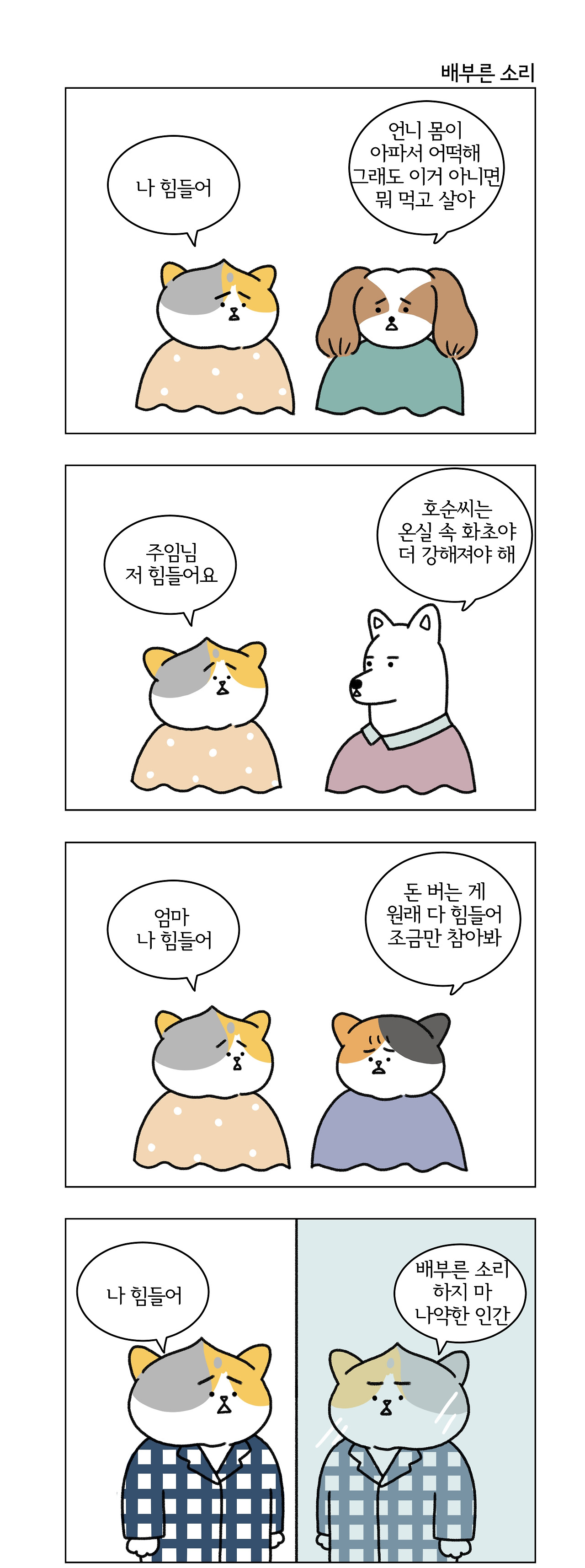 사람들에게 힘들다고 이야기하면 돌아오는 대답은 비슷했다. 배가 불렀다. 사기업은 그것보다 더 힘들다. 무슨 그런 약한 소리냐. 조언을 가장한 질책이었다. 위로로 포장된 한탄도 있었다. 이곳이 싫지만 여기를 떠나서 할만한 일이 없다. 본인도 돌발성 난청이 생길 정도로 힘들었지만 여자든 남자든 마흔 넘으면 어디서 이만한 월급 받고 일 못한다. 몸이 아파서 쉬고 싶지만 대출 때문에 쉴 수 없다. 양쪽 모두 맞는 말이었지만 어느 쪽도 도움이 되지 않았다.