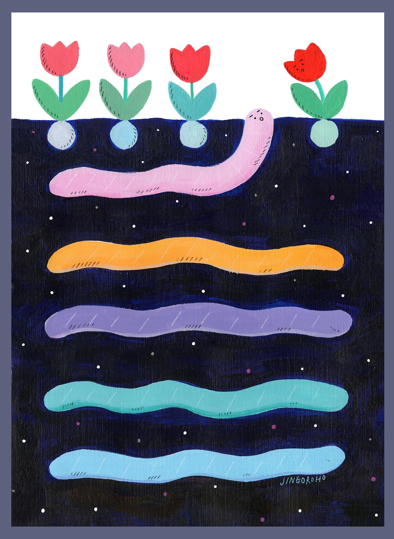 퇴직할 때 세웠던 자립 작가의 꿈을 아직도 이루지 못한 데다 자주 아프기까지 한 나지만 맨손으로 지렁이를 만질 수 있지 않은가? 영원히 아플 것 같고, 영원히 돈을 벌지 못할 것 같고, 영원히 발전이 없을 것 같을 때면 시무룩해도, 힘들고 무력한 시간은 언젠가 지나갈 것임을 기억하고 있지 않는가? 속도는 느리고 자주 멈출지라도 내가 하고자 하는 일, 좋아하는 일을 끝까지 해내고 싶다는 의지를 지켜내고 있으니 나 자신에게도 말해주자. "대단해!"