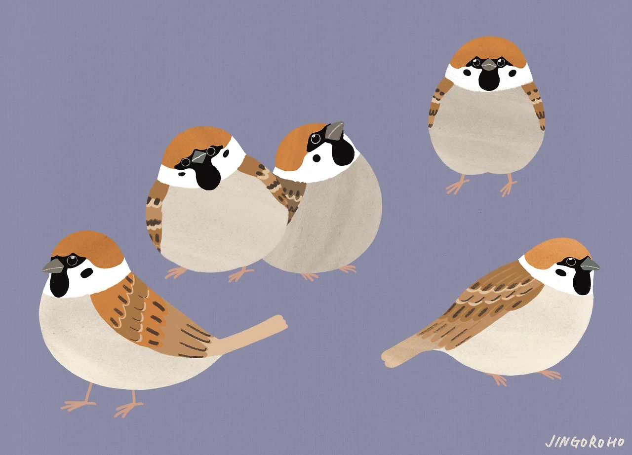 주위에서 볼 수 있는 다른 새들도 많은데 굳이 참새를 왜 귀여움의 최고봉으로 치냐고 묻는다며 두 가지 이유가 있다. 첫 번째 이유는 매일 만나온 친숙함 때문이다. 귀여움은 매일 보고 또 볼수록 깊이 각인된다. 특이하고 새로운 귀여움도 짜릿하지만 오랜 시간 세포 안에 스며든 귀여움을 이길 수는 없다. 참새는 유라시아 대륙 전체에 분포하기 때문에 해외여행을 가더라도 자주 볼 수 있다. 몇 년 전 홍콩에 여행을 간 적이 있는데 동남아시아 국가가 처음이라 이국적인 정취가 과도하게 느껴졌다. 적응이 안 돼서 살짝 불안함이 드는 와중에 거리에서 참새를 발견했다. 참새가 주는 친숙한 귀여움에 긴장이 풀렸다. 마치 어느 도시에나 똑같은 모습으로 있기에 낯선 곳에서 여행자들에게 안도감을 주는 스타벅스를 보는 기분이었다.