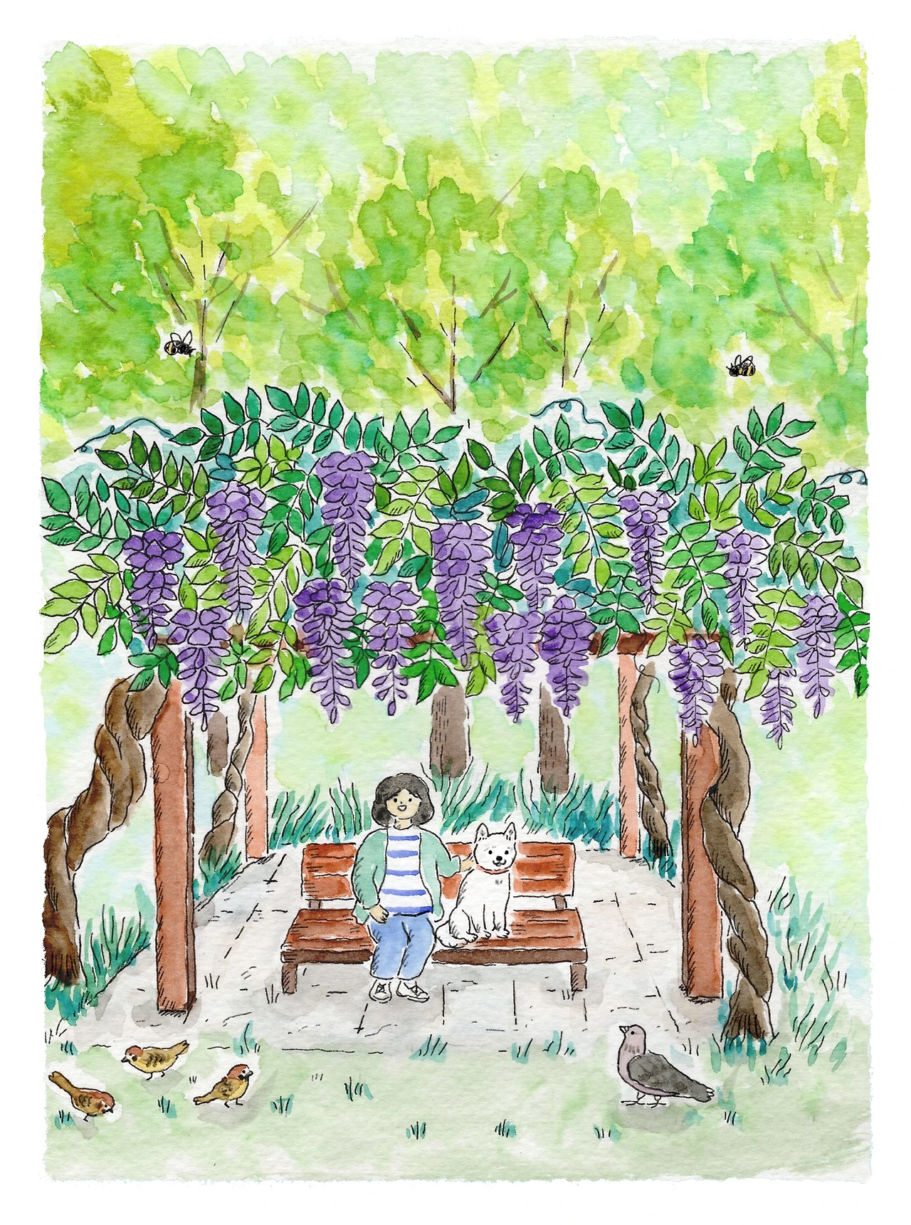 봄이 깊어지다 못해 금방 여름이 가까워질 것 같은 기분이 들면 진한 꽃향기가 바람을 타고 아파트 후문과 맞닿은 작은 공원을 날아다녔다. 공원에는 기둥마다 등나무 줄기가 꽈배기처럼 꼬여 올라간 정자가 세 개나 있었다. 기둥을 타고 올라온 등나무들은 지붕 위에서 만나 가지를 무성하게 뻗었고 서로를 붙잡고 하나가 됐다. 잎이 돋아나는 계절이 되면 정자의 지붕은 연녹색으로 싱그럽게 빛나고 이윽고 아름다운 연보라색 꽃송이들이 잔뜩 달렸다. 그 향기가 얼마나 좋은지 공원을 지날 때마다 나는 코를 벌름거렸다. 등꽃이 피면 그 앞에서 걸음을 멈추는 건 나뿐만이 아니어서 온 동네의 벌들과 곤충들이 윙윙 소리를 내며 정자로 몰려들었다.