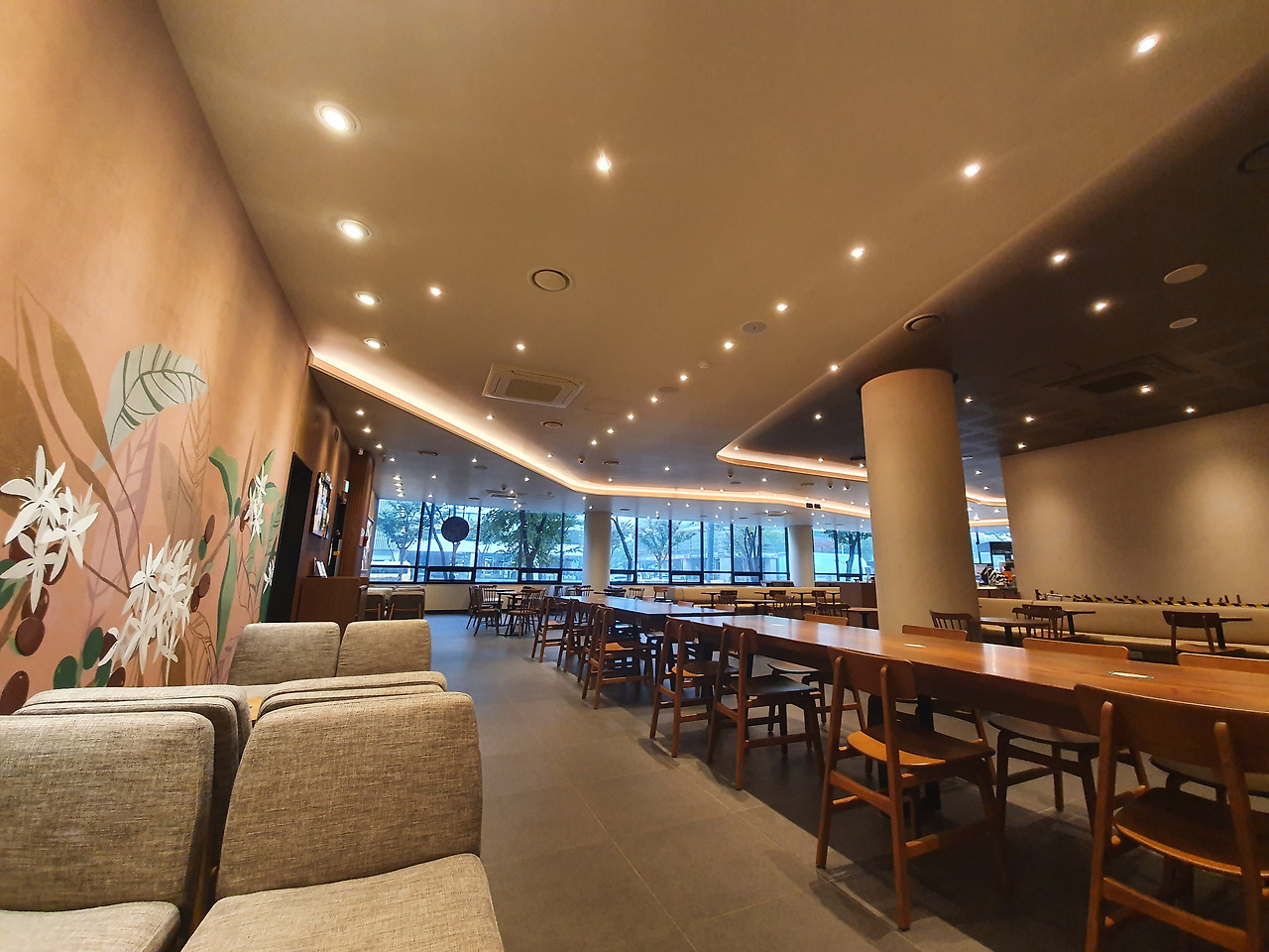 언제인지 모르지만 사무실 옆 건물에 스타벅스가 생겼다. 시원하게 탁 트인 실내전경, 스치는 사람들과 사계를 바라다볼 수 있는 통유리, 'ㄴ'자 모양으로 구부러진 자리엔 예쁜 벽화까지 있다.