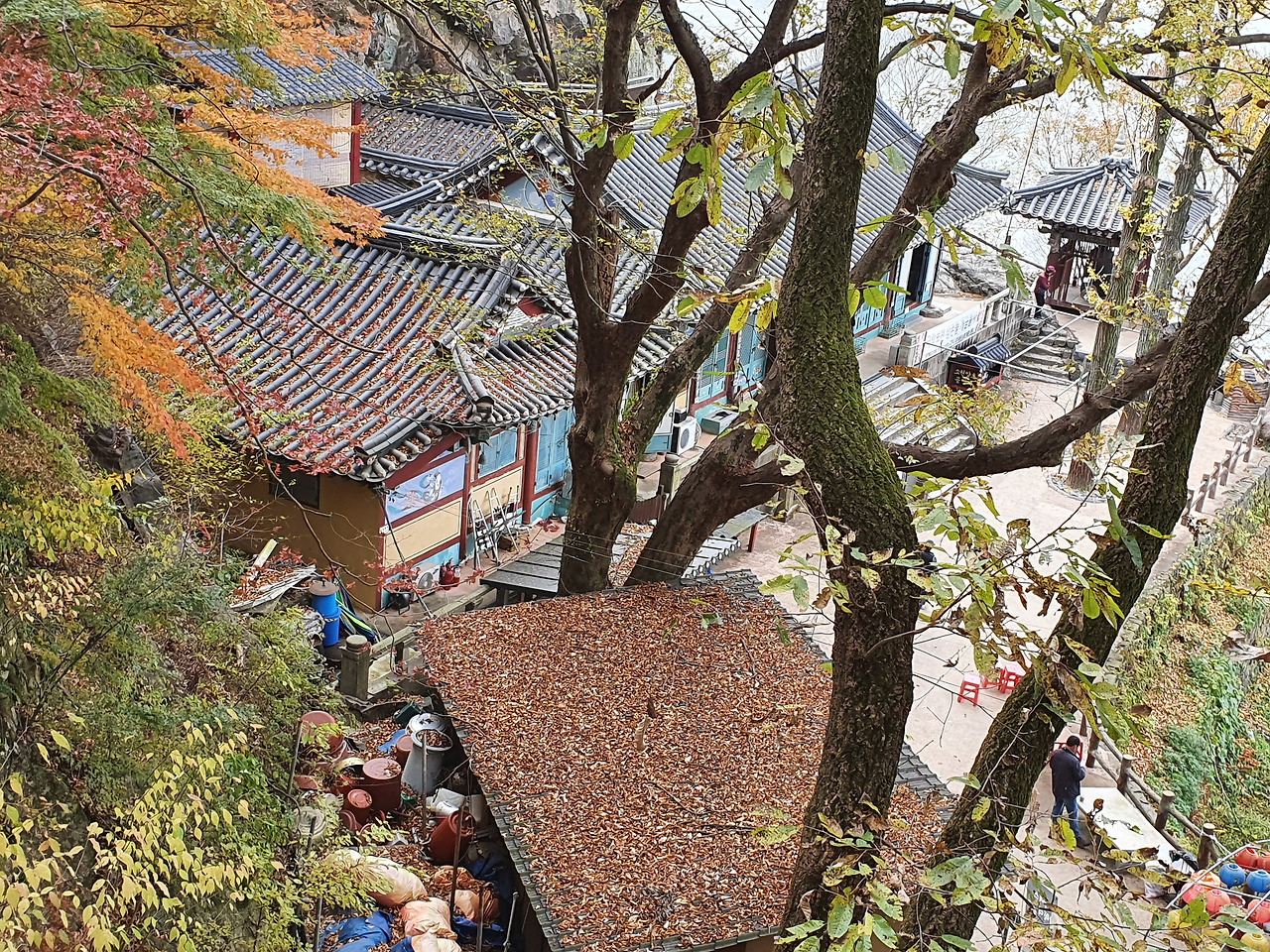 부소산성길에 가을이 쏟아진다. 백마강을 굽어보는 고란사 지붕 위의 낙엽은 만추의 고즈넉함에 빠져있다. '데엥 데엥~뎅그렁' 바람을 타는 풍경소리와 스님의 독경소리에 가을은 깊어간다.