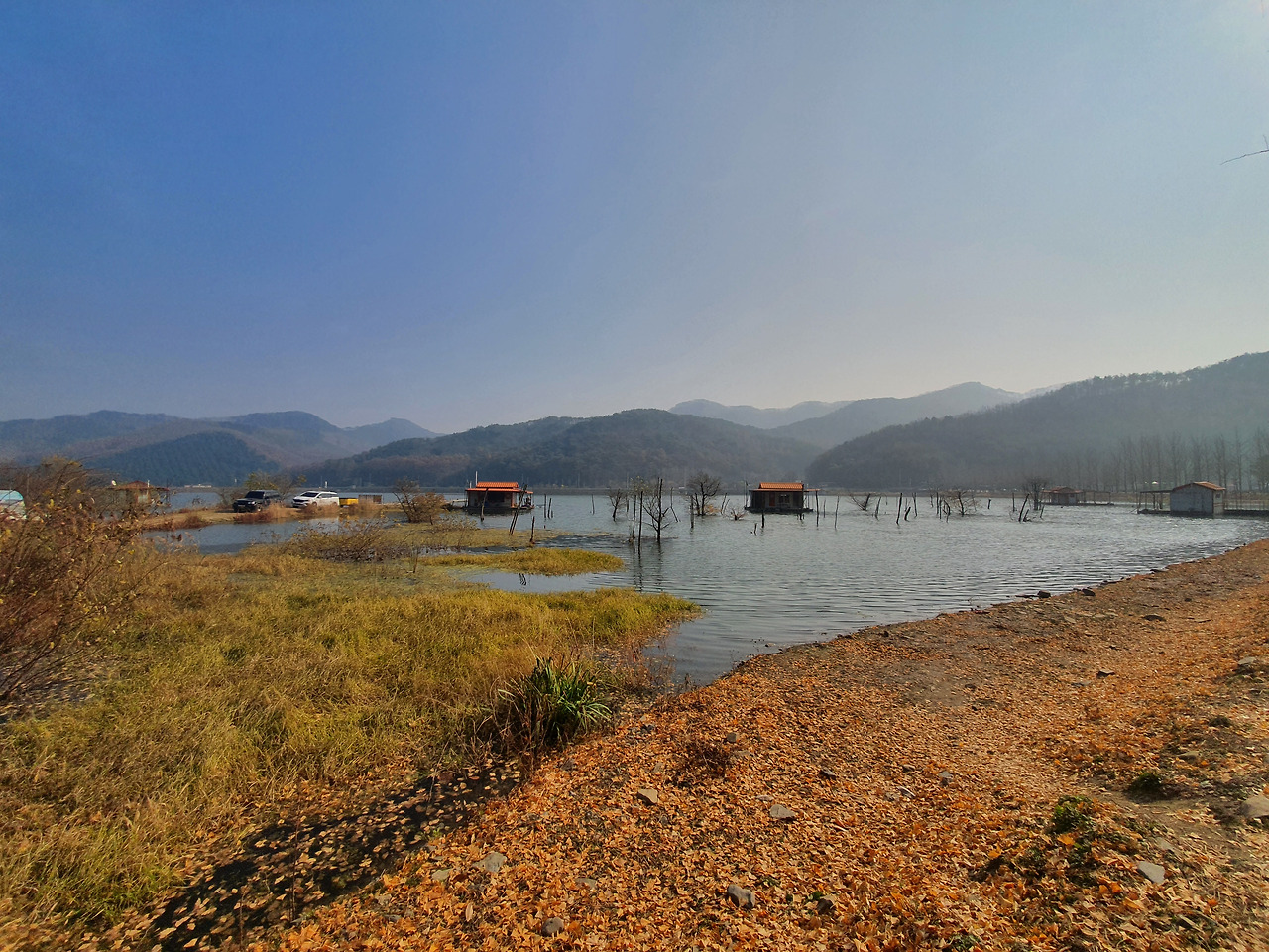 은행나무는 벌써 옷을 다 벗고 겨울채비에 들어갔다. 빨간 플라스틱 의자에 앉아 세월을 낚는 낚시꾼을 햇살이 끌어안는다. 잔물결에 몸을 비비던 청둥오리 떼가 파스텔톤 방갈로 지붕 위로 날아올랐고 깃털은 은갈색으로 빛났으며 호수는 더욱 반짝거렸다.