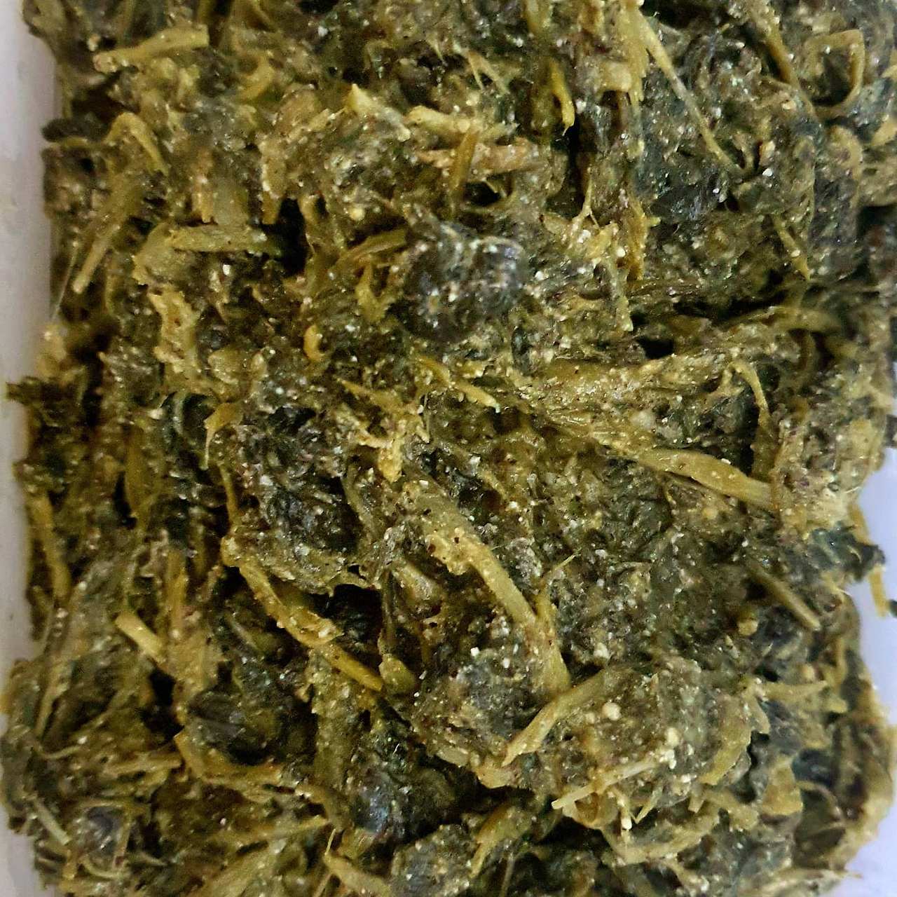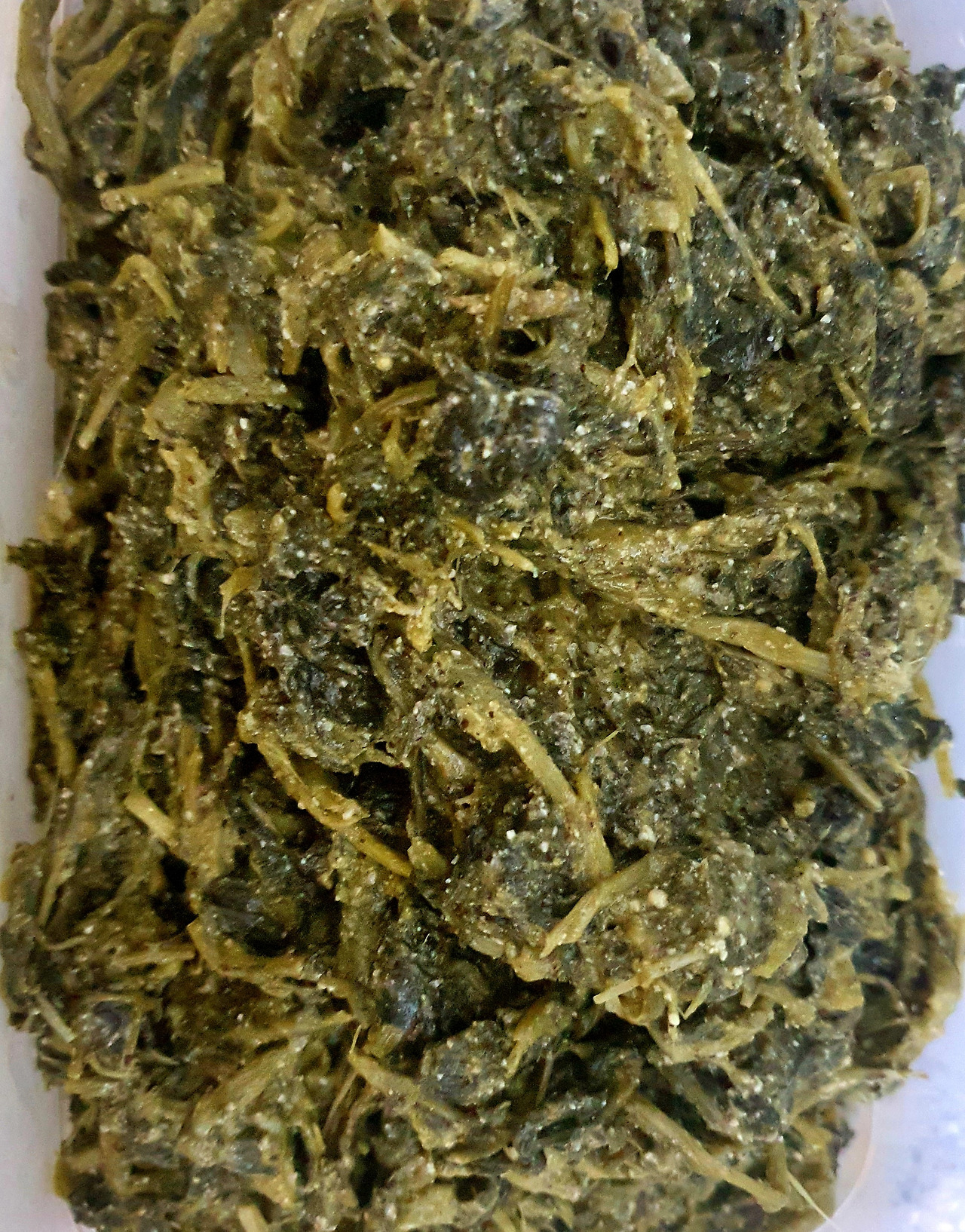 #건유채나물 볶음 (건유채나물, 들기를, 파, 마늘, 국간장, 들깻가루) 1)건유채나물을 30분 정도 삶은 후 삶은 물에 그대로 한 시간 정도 담가 둔다ㅡ부드러워짐