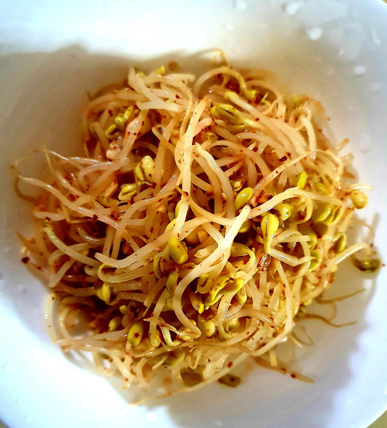 #콩나물 아삭 무침 (콩나물, 고춧가루, 마늘 다진 것, 파, 들기름, 참치액젓, 통깨) 찜통의 물이 끓으면 콩나물을 얹고 콩나물 비린내가 나기 시작한 후 30초 정도 있다 얼른 찬물에 헹군다. 아삭해 짐. 소쿠리에 담아 흔들어 물기를 뺀 후 참치액젓 , 파 마늘, 들기름. 고춧가루를 넣고 조물조물. 통깨로 마무리)