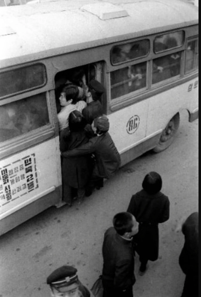 미호천 다리를 건너기 전 버스정류장이 있었고, 청주에 있는 고등학교를 다니는 남녀 학생들은 학교별로 모여 버스를 기다린다. 이미 만원이 된 버스에 안내양은 온몸으로 학생들을 밀쳐서 구겨 넣는다. 버스 문을 손바닥으로 '탕! 탕!' 치며 "오라 잇!" 소리치고 몸을 뒤로 돌려 엉덩이로 한번 더 승객을 다져 넣는다. 앙손으로 버스 문 기둥을 부여잡고 문이 닫히지도 않은 채 버스는 청주 가로수 길을 질주한다;