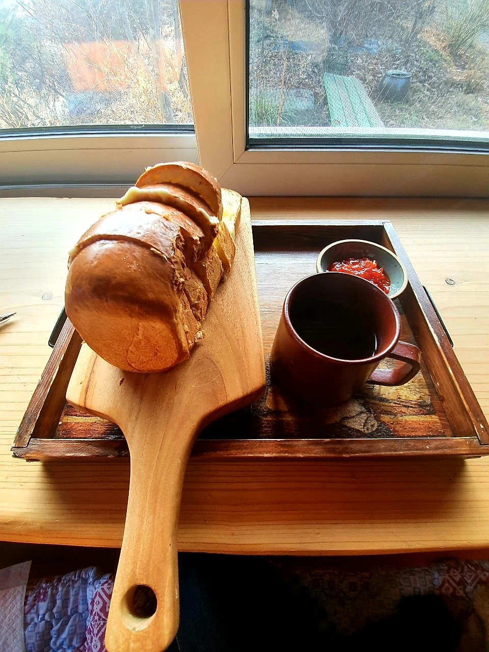 식은 커피 한 모금과 빵 한 조각