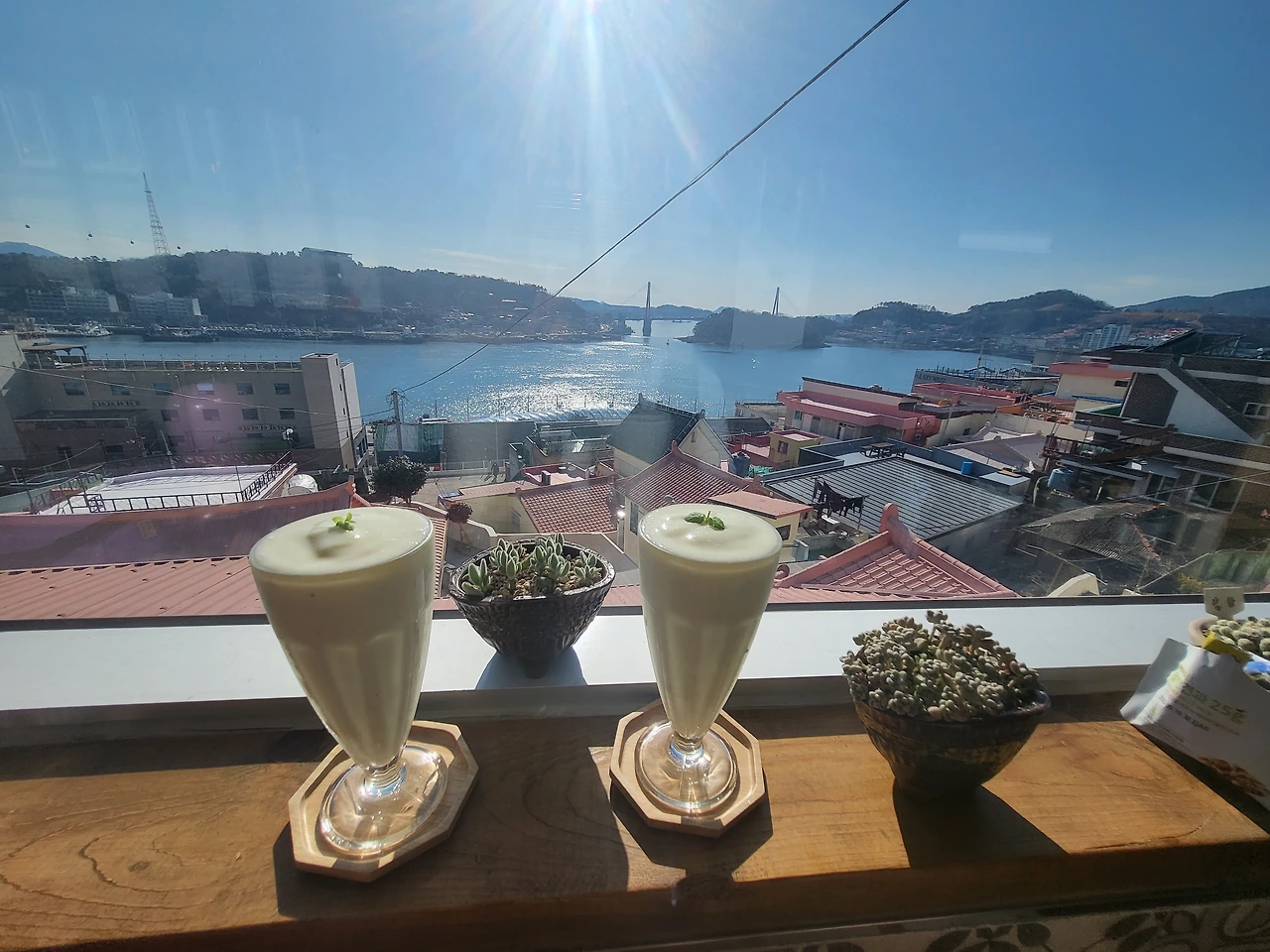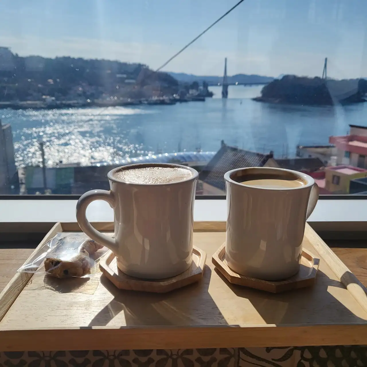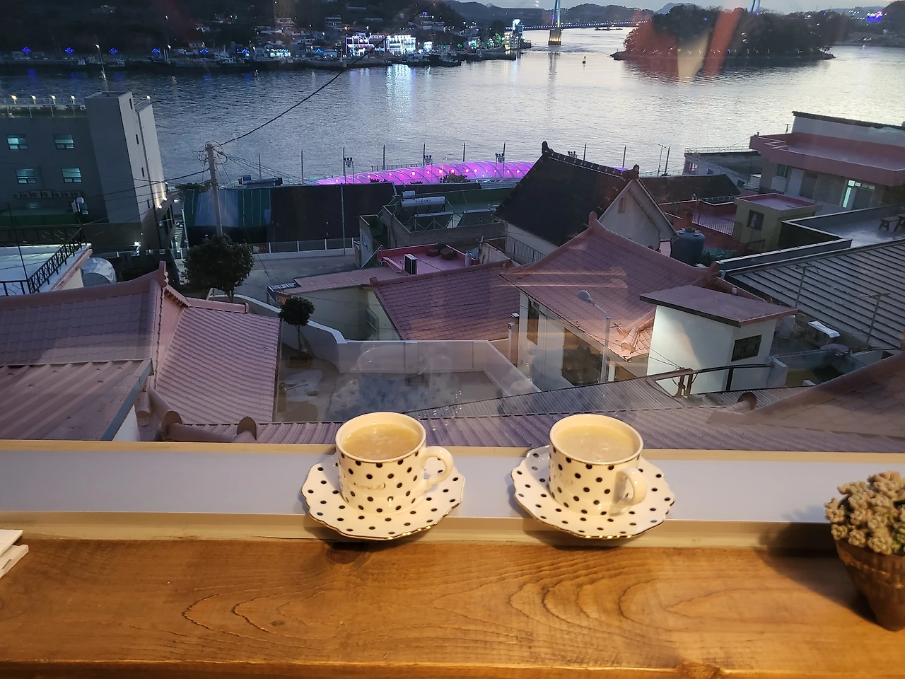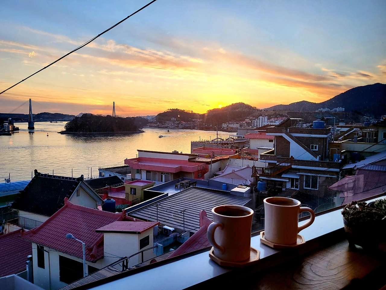 바다 빛은 붉어졌다. 유람선이 지난 자리에 작은 파도가 일고 갈매기 한 마리가 석양 속으로 날아오른다. 파스텔톤이 선명한 카페 아래 벽화마을 지붕 끝으로 하나 둘 어둠이 모여든다. 해상 케이블카는 공중에 떠다니는 대형 반딧불이 같다. 헝가리 무곡 제5번이 흐르고 여행자의 시간이 이대로 정지되길 소망한다. 커피가 바닥을 보일 즈음 유자와 청귤을 섞어 만든 차가 우리 앞에 놓였다.