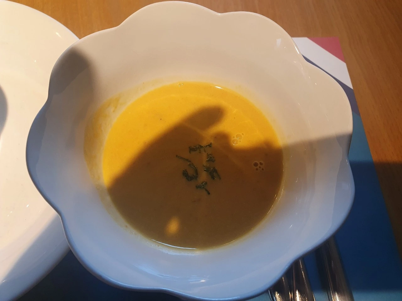 먼저 전체요리로 새하얀 꽃잎 모양의 하얀 그릇에 렌틸 & 단호박 수프가 나왔다. 샛노란 호박 수프는 내추럴한 달콤함과 렌틸콩의 고소한 맛이 더해져 입안 가득 따뜻한 풍미로 식욕을 돋운다.