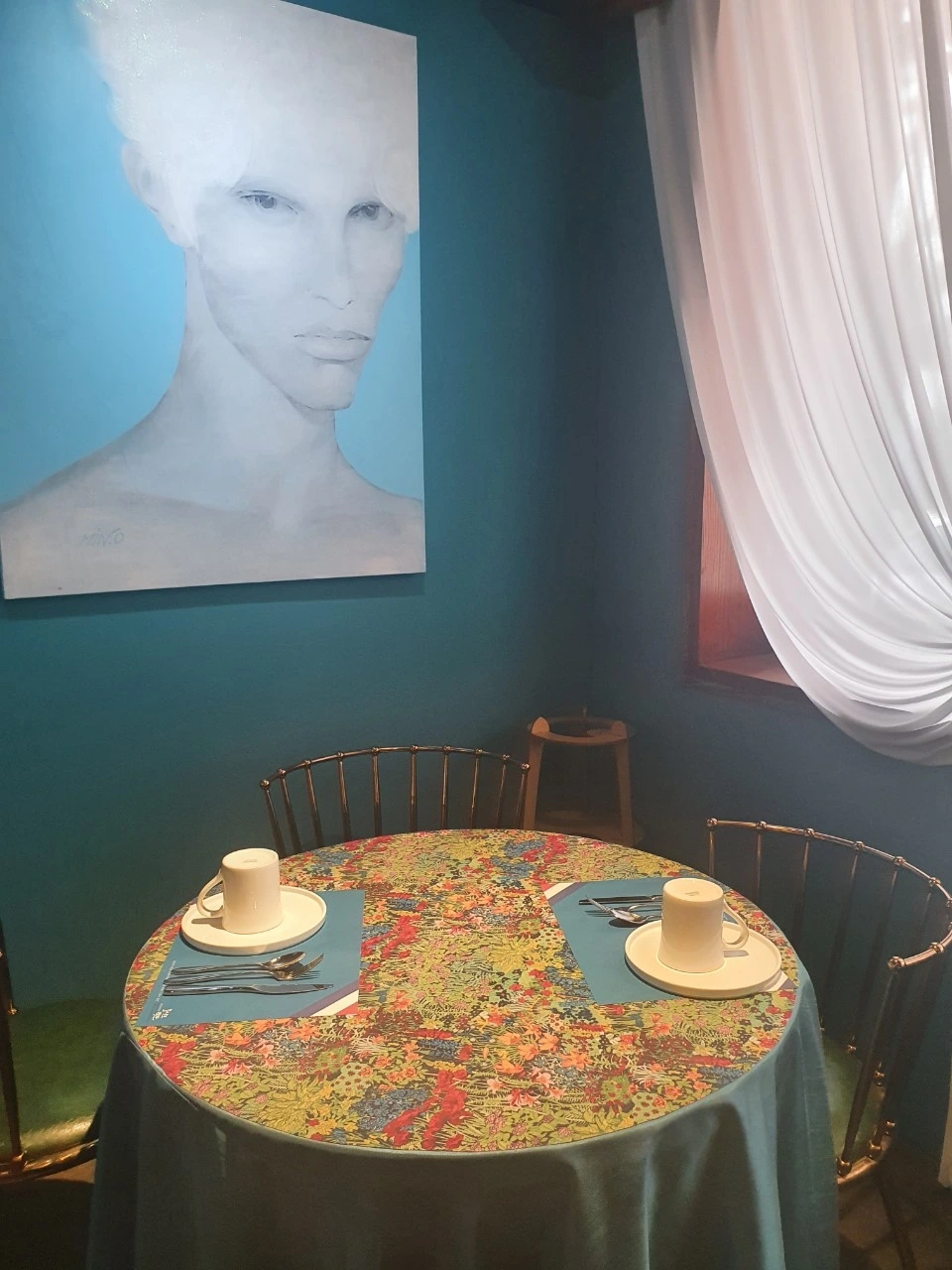 하얀 테이블과파란색 커튼이 드리워진 구석진 자리에 헤밍웨이나 피카소의 연인이며 뮤즈인 '애드리아나'가 나타날 것만 같은 상상은 과하지 않다.