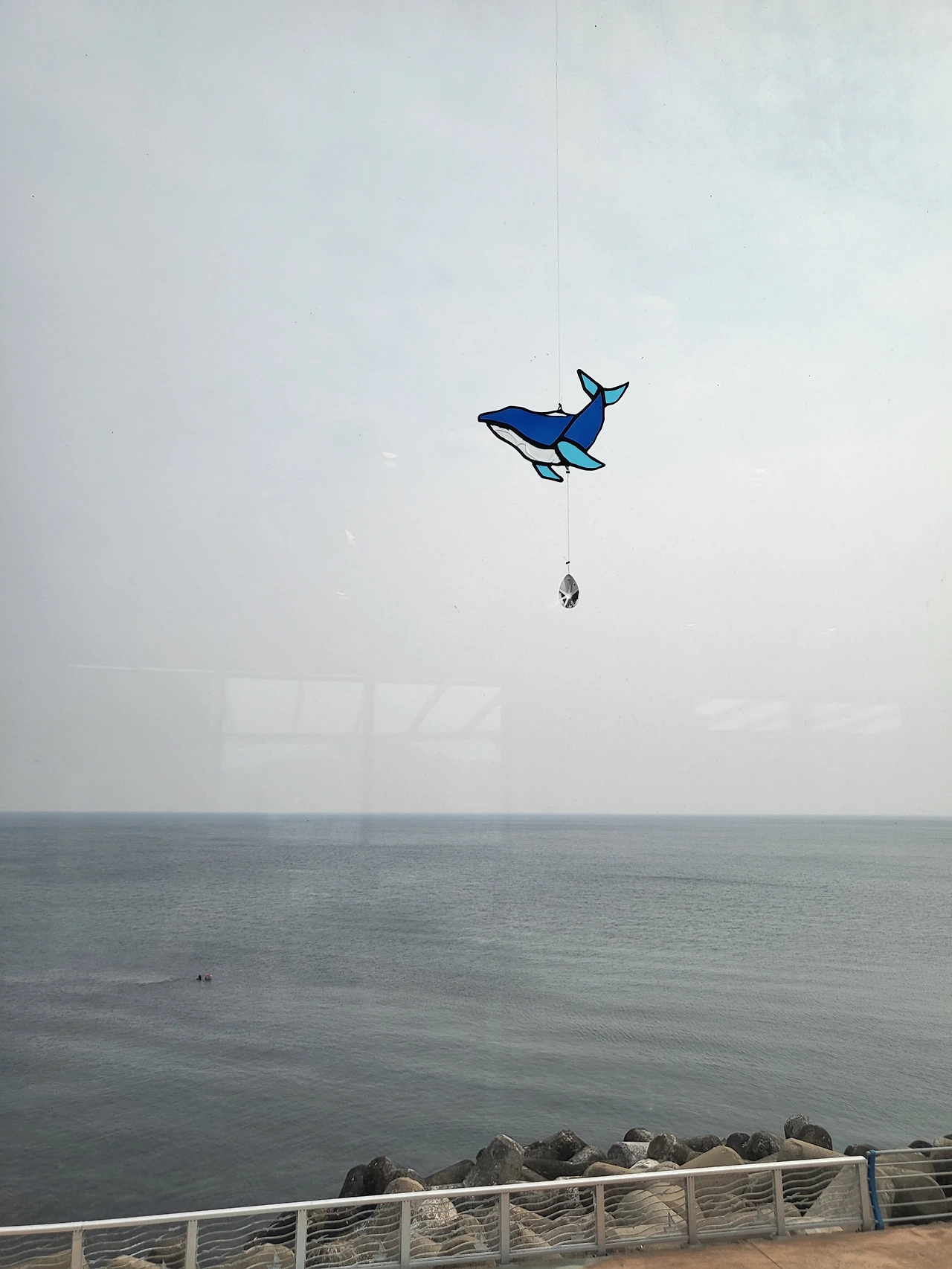 통유리에 앙증맞은 고래가 흔들거리는 카페는 작고 아담했다. 그리고 너무나 예뻤다. 창가빈자리에 별과 내가 앉는다.
