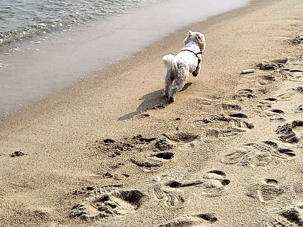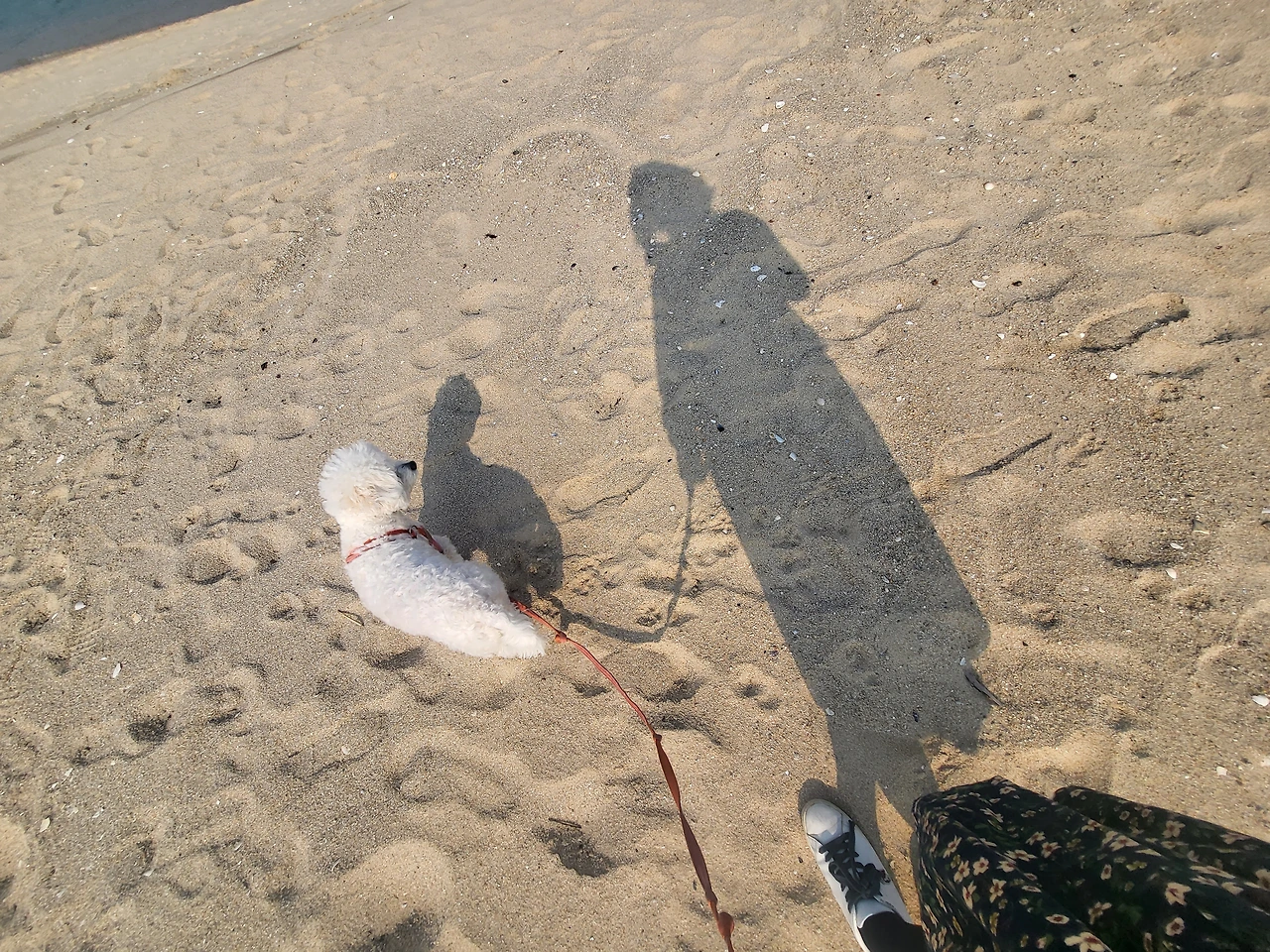 반려동물 가족들과 만나면 남녀노소 불문 마스크 속 그들 얼굴은 몰라도, 어떤 말도 쉽고 편하게건넬 수 있고 장시간 대화도 가능한데, 신기한 것은 내가 만난 반려 가족 거의 대부분이 예의 바르고 참 따뜻한 사람들임을 느꼈다는 거다. 여전히 만나는 새로운 누군가도 그렇다. 물론 반려견이 아닌 그야말로 애완견으로 또는 과시용으로 키우는 소수의 사람들이 키우다 싫증 나면 장난감 버리듯 유기해, 길거리를 떠돌며 살아야 하는 슬픈 운명이 처하는 아이들도 많다. 18년을 살다 간 첫아이 요크셔테리어 여울이의 투병생활을 1년간 지켜보고 함께하면서, 몰라서 못해주고 알면서 못해준 것들을 별이에게 쏟아붓는 중이다. 별이 이야기는 앞으로도 계속 쓰게 될 것 같아서 이만하고 바다를 찾는 이유는 따로 있다. 그것도 모래가 곱고 면적이 넓은 그리고 인적이 드문 아침 바다를.,.