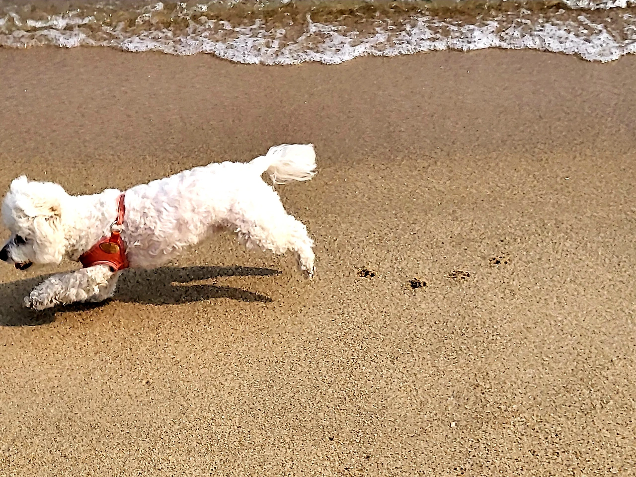 첫 여행을 을왕리 바닷가로 갔고 해변에는 차 박 하는 몇몆외에 정말 아무도 없었다. 목줄을 풀자마자(사람들이 있으면 절대 안 푼다) 뛰는 별은 환상적이었다. 등산도 같이 해보고, 천변도 걸어보고, 애견카페도 가보았지만 모래 위를 달리는 것만큼은 아니었다. 파도와 장난을 치고 갈매기를 쫓으며 노는 별이 모습에서 나를 보기도 한다. 내가 원하는 삶은 무엇일까. 훨훨 날아 자유롭게 떠돌다 가는 걸까. 나는 별이를 여행견으로 키우며 내 삶을 변화시킨다.