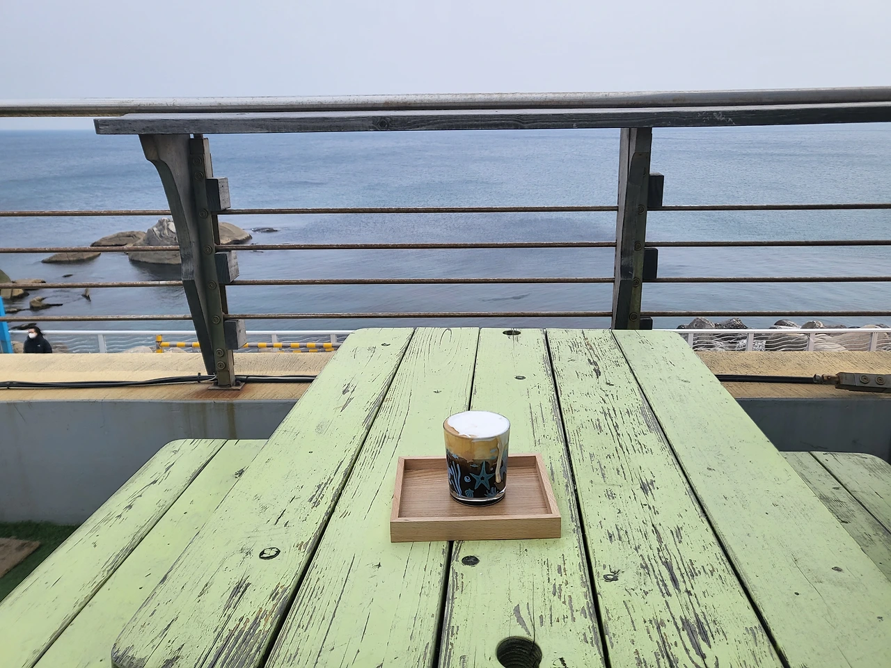 바다는 참 예뻤고, 커피는 몽롱했다. 그리고 나와 별은 행복했다. 통유리 너머 바다 위에 작은 배가 물살을 가르고 갈매기가 날아오른다.